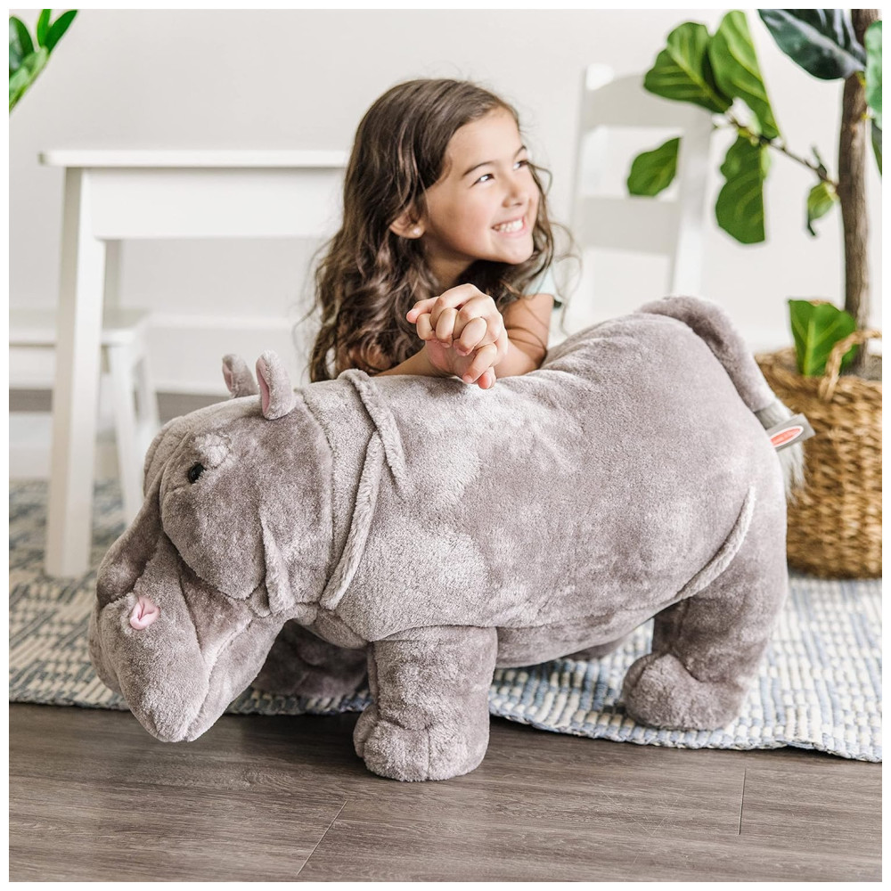 Pelúcia Hipopótamo 60 cm de Comprimento com Design Realista para Crianças Acima de 3 Anos Melissa & Doug Cinza