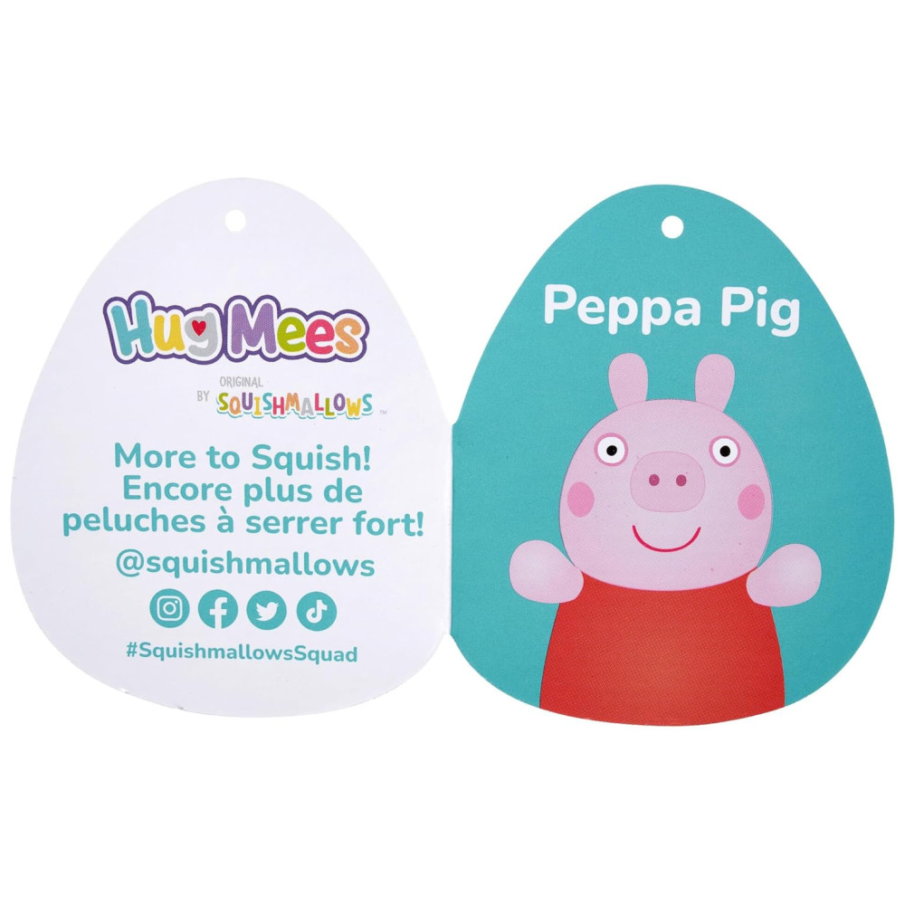 Adicione Peppa Pig ao seu Esquadrão de Squishmallows com esta pelúcia de tamanho médio ultracomprimível de 25 cm. Feita com materiais ultramacios e de alta qualidade, esta pelúcia HugMees apresenta braços estendidos e está sempre pronta para um abraço. Ideal para relaxar em casa, assistir a um filme ou viajar, esta pelúcia macia é fácil de limpar, lavar à mão e depois secar ao ar.