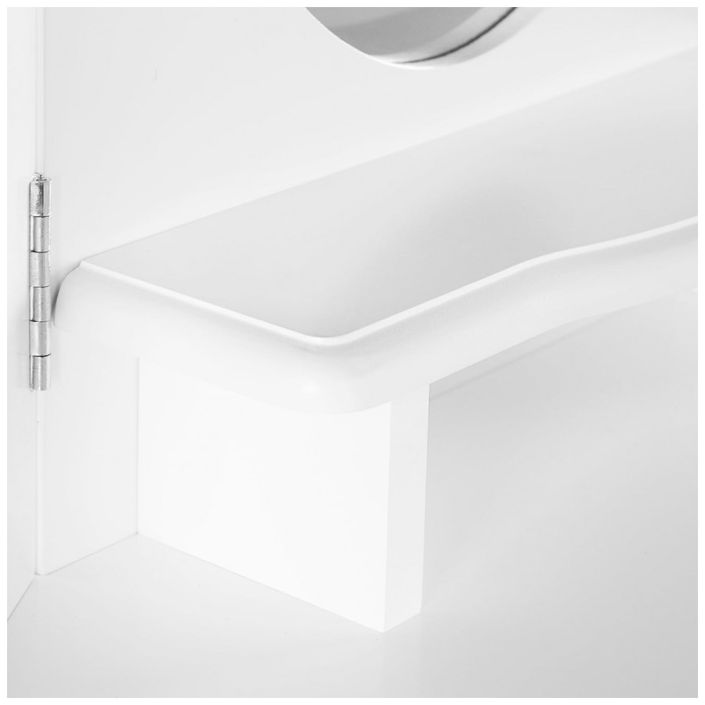 Conteúdo da caixa: 1 penteadeira Classic White com espelho triplo, 1 banqueta, ferragens e manual de montagem