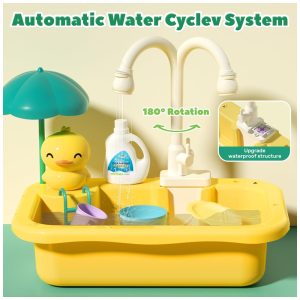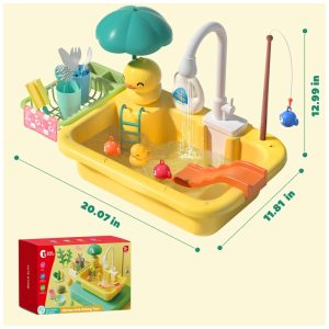 Este conjunto de pia de brincar com água corrente é perfeito para crianças que adoram brincar de cozinha e pesca. A torneira elétrica à prova d água permite que seus filhos lavem seus brinquedos de comida, copos e pratos com água corrente enquanto se divertem na cozinha. O conjunto é feito de material plástico ABS de qualidade, inodoro e não tóxico, sem BPA, proporcionando um espaço de brincar seguro e amplo para as crianças.