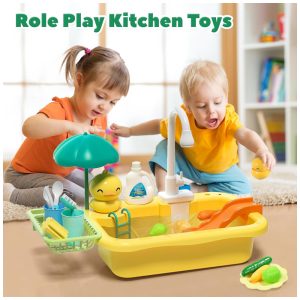 Pia de Brinquedo com Água Corrente Utensílios de Cozinha e Brinquedos CUTE STONE Amarela
