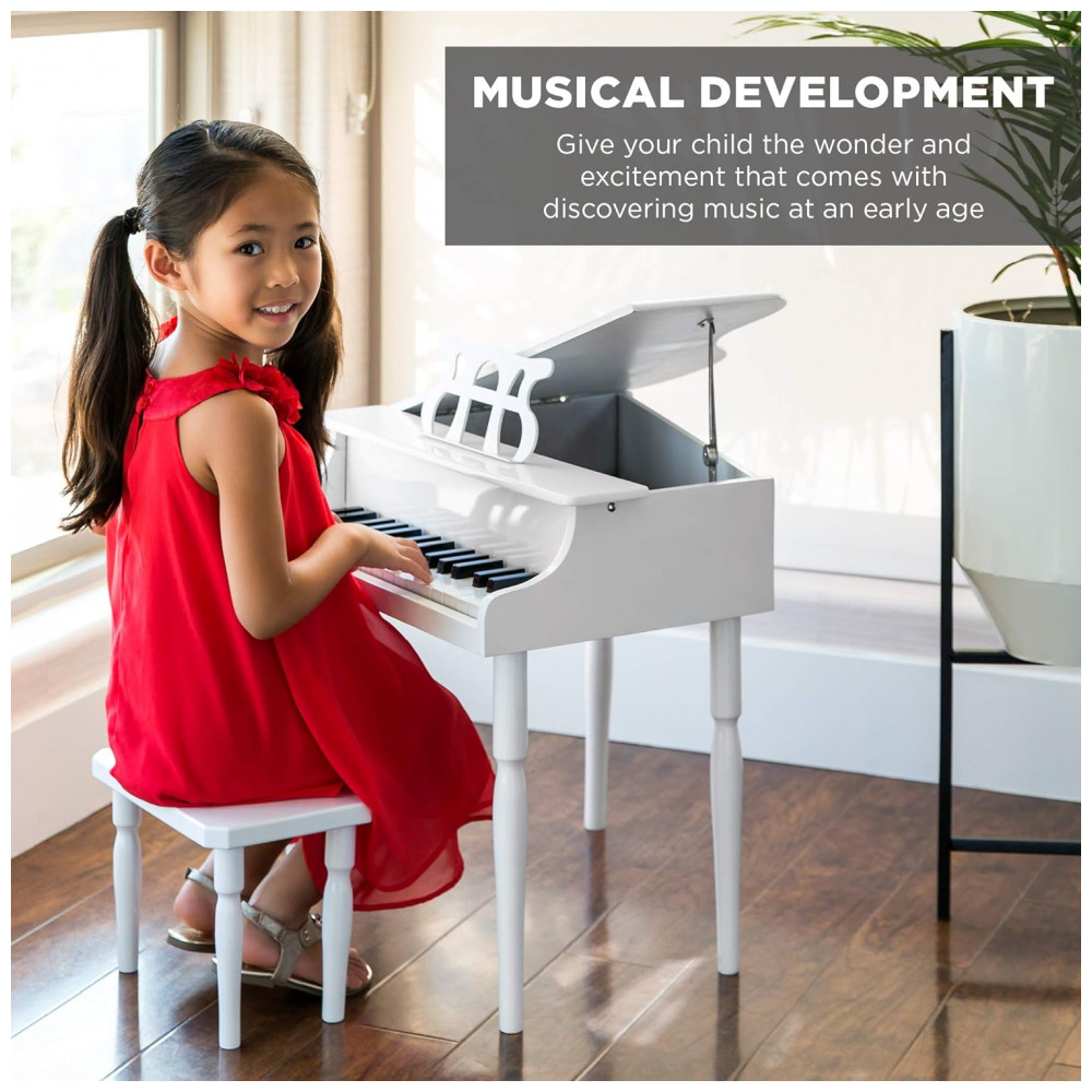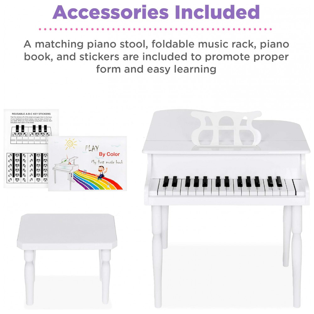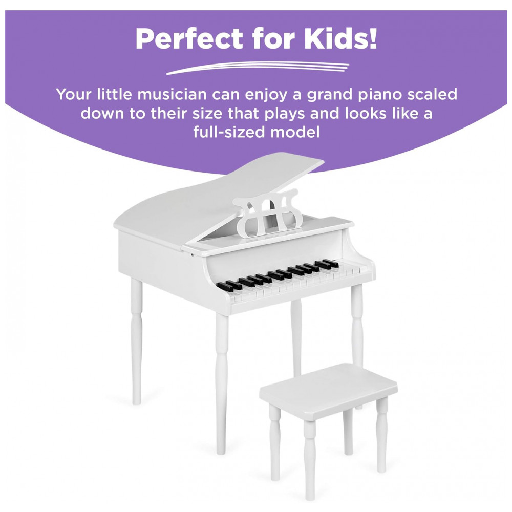 Piano de Cauda Infantil com 30 Teclas e Banco para Crianças de 1 a 5 Anos Best Choice Branco