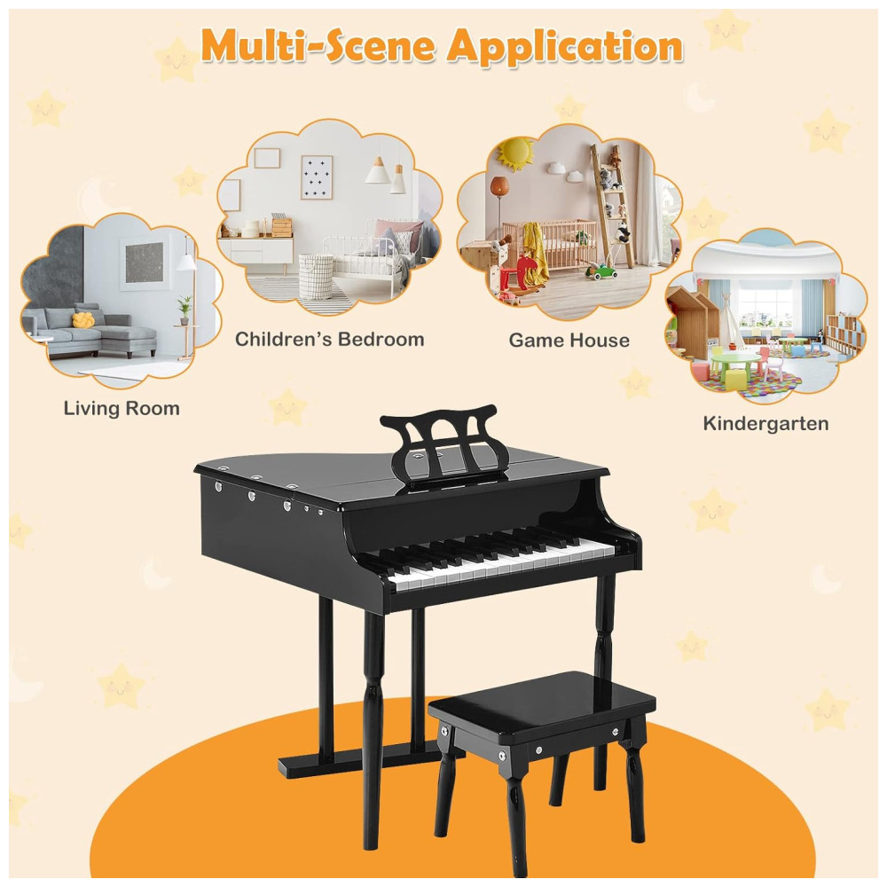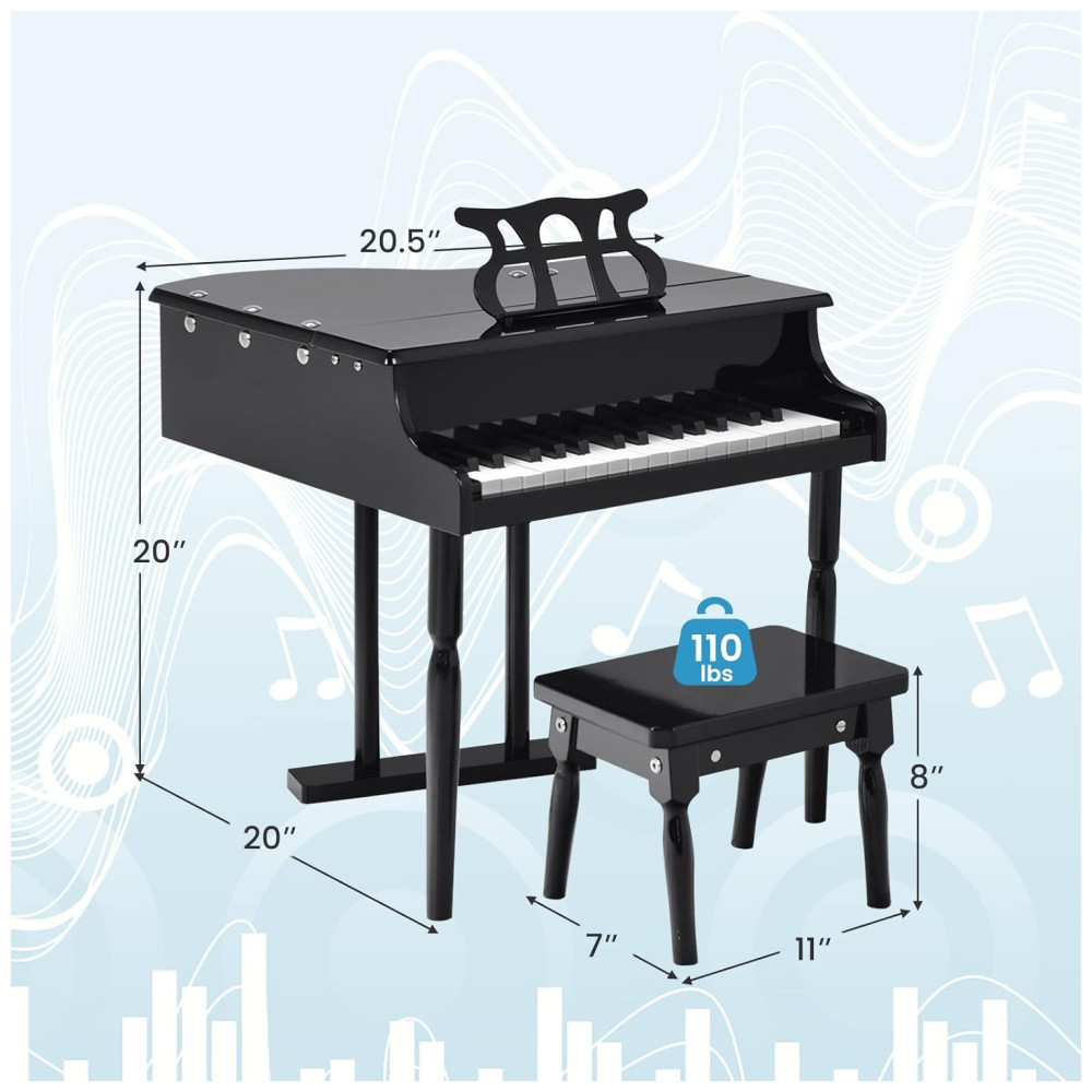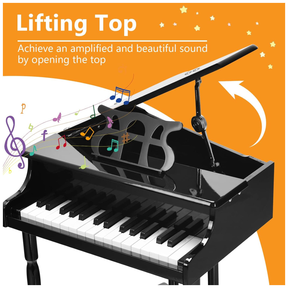 Piano de Cauda Infantil com 30 Teclas Suporte para Partitura e Banco HONEY JOY Preto