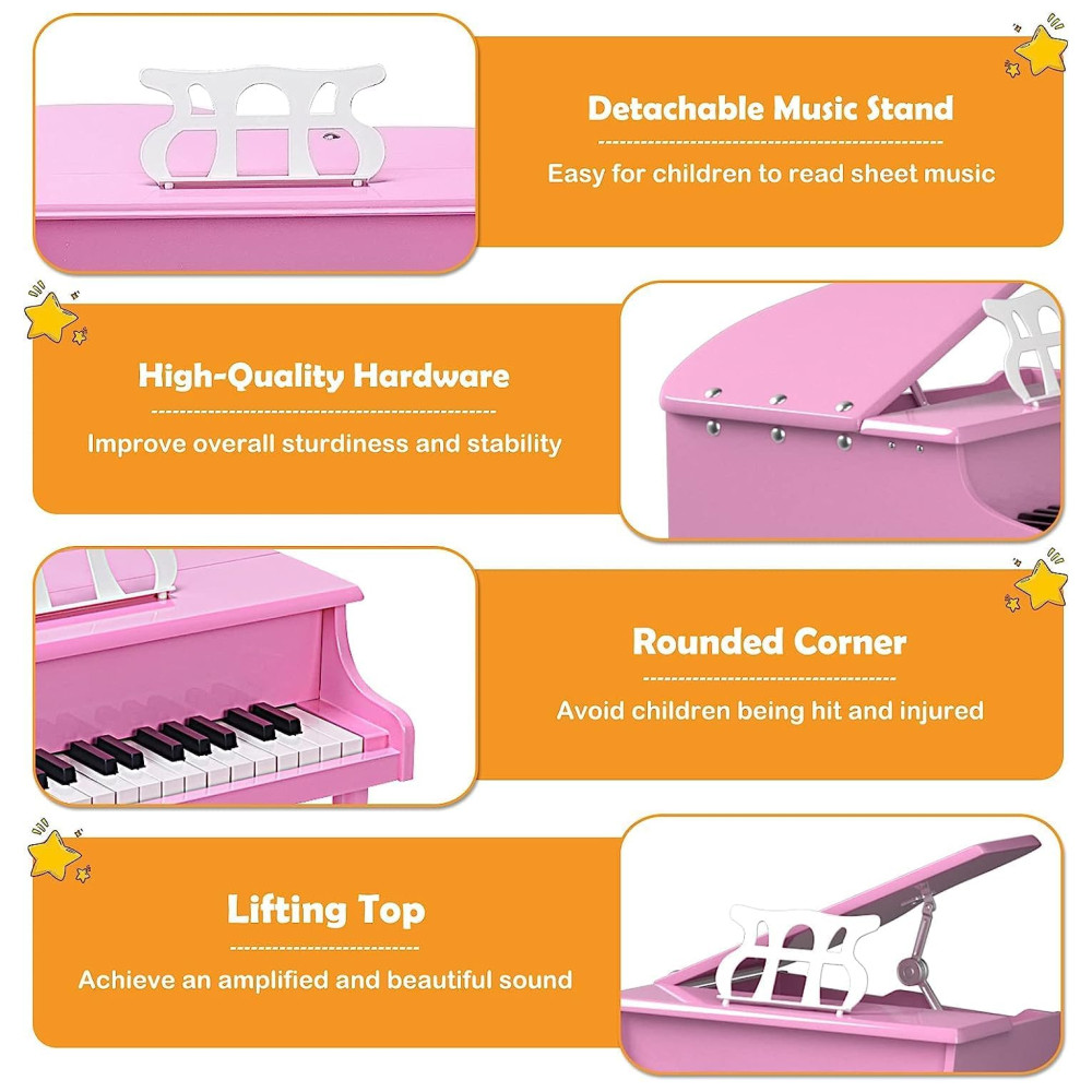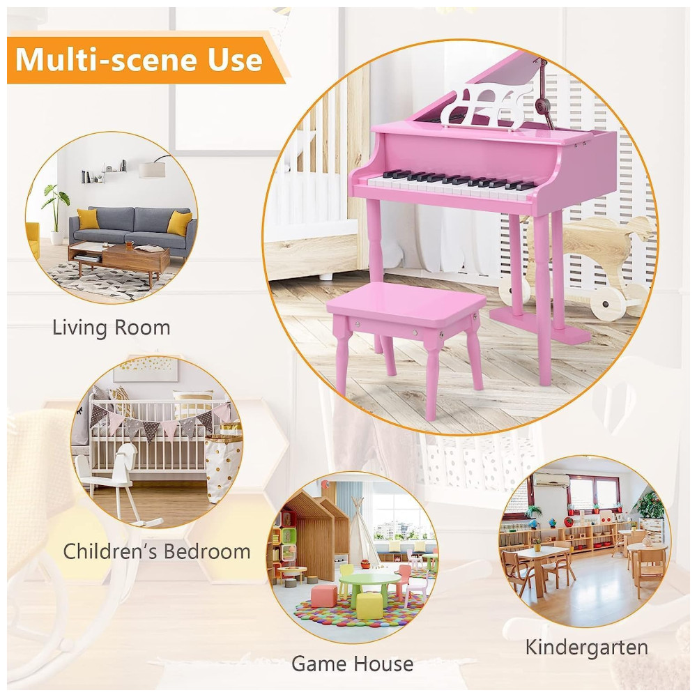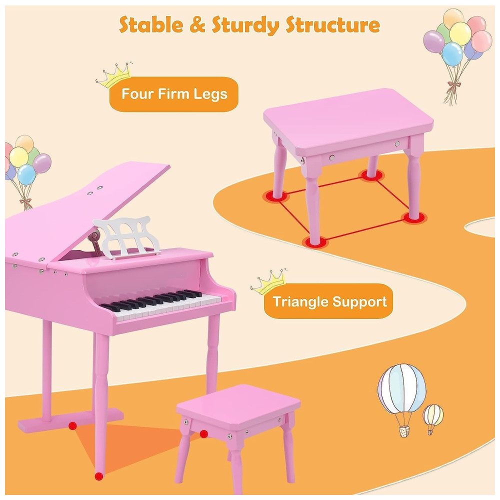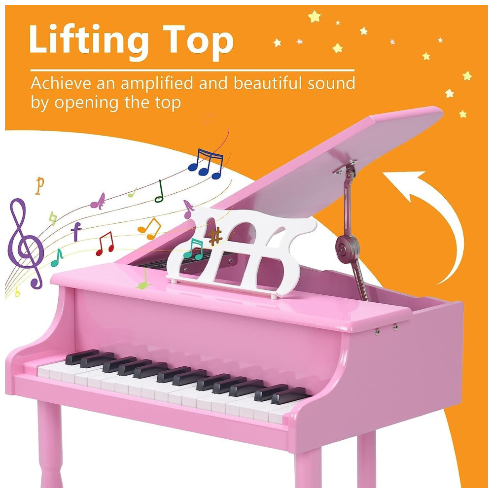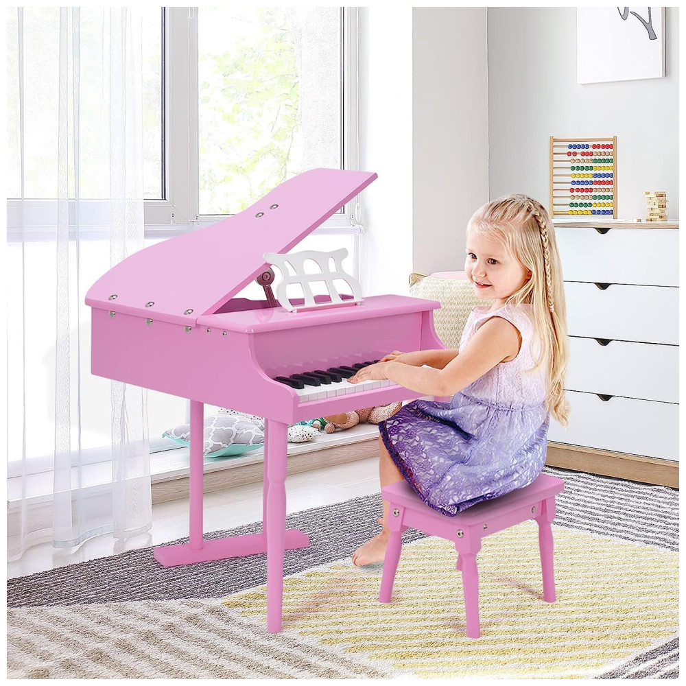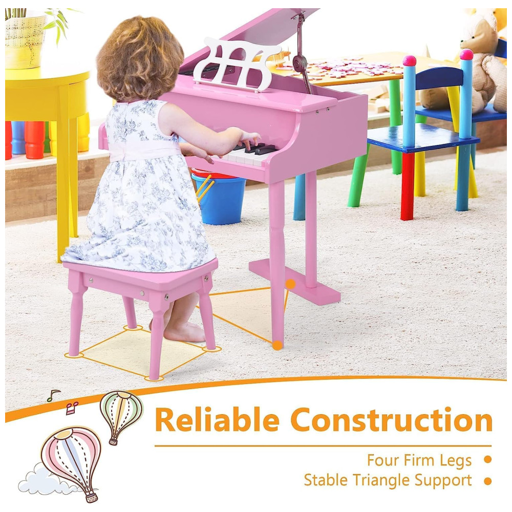 Piano de Cauda Infantil com 30 Teclas Suporte para Partitura e Banco HONEY JOY Rosa
