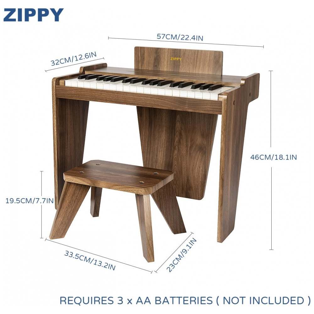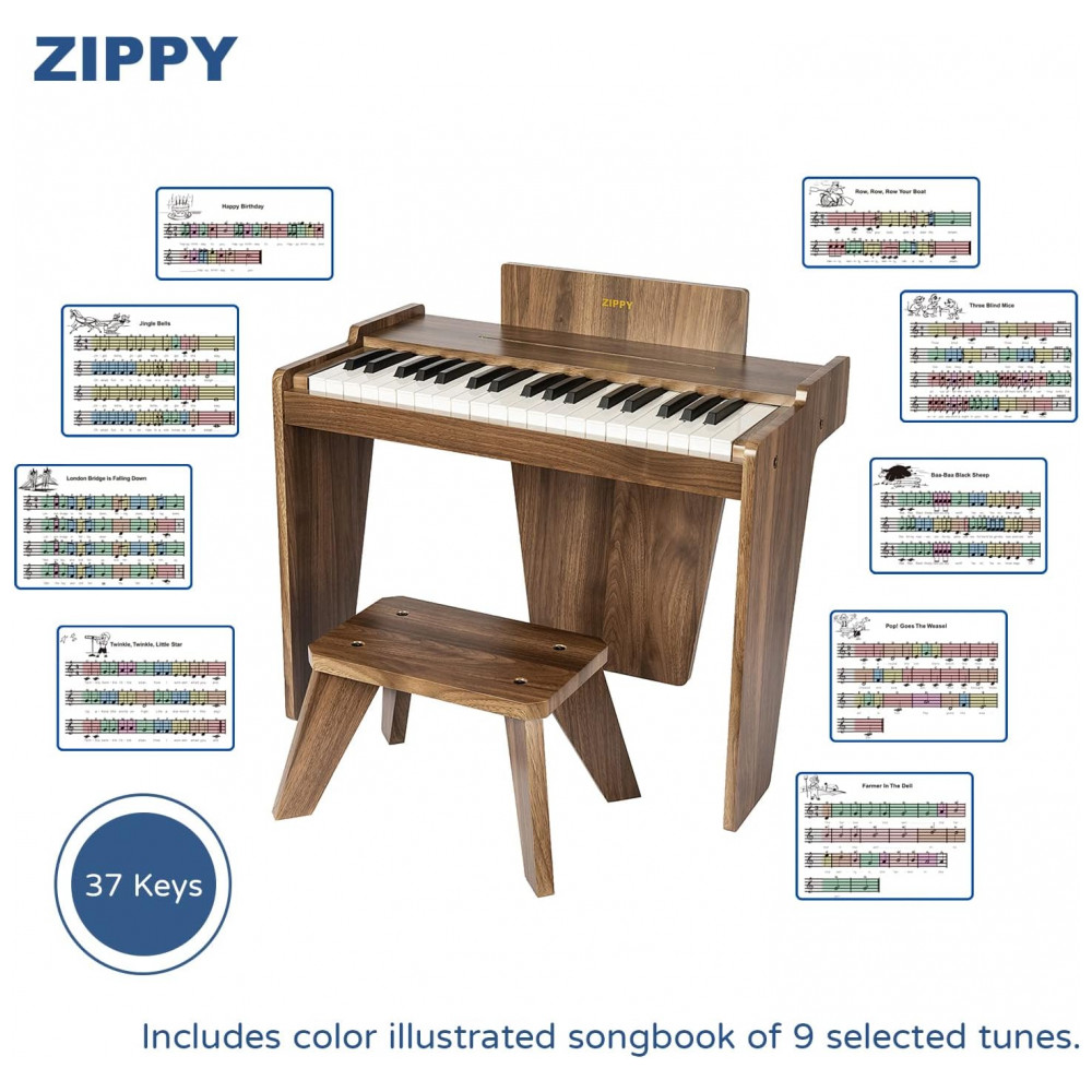 Piano de Madeira Infantil Educacional com 37 Teclas para Meninos e Meninas ZIPPY Marrom