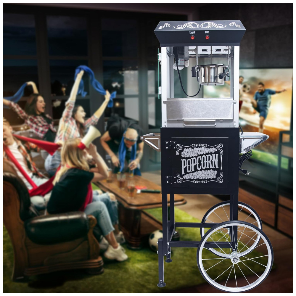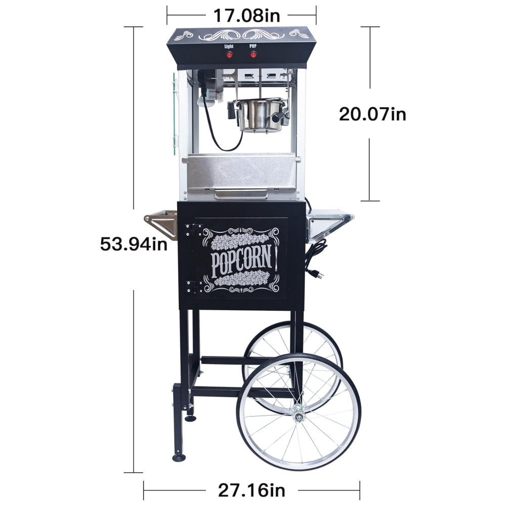 Pipoqueira 227g com Carrinho Estilo Retrô Cinema Rodas Gavetas Colher e Pegador Perfeita para Sessões de Cinema em CasaWiilayok