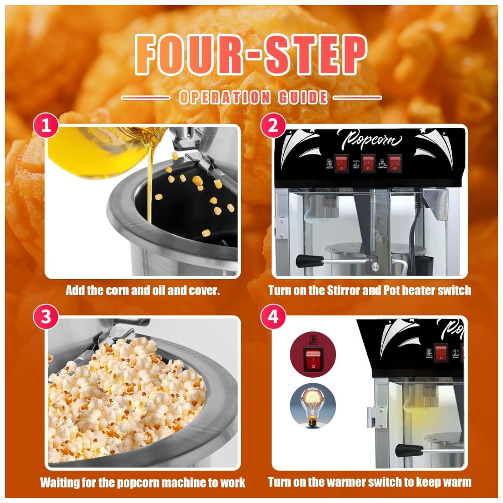 Pipoqueira Comercial 850 W Estilo Cinema Estrutura de Aço Portas de Vidro Temperado – Ideal para Cinema em CasaELOMBR