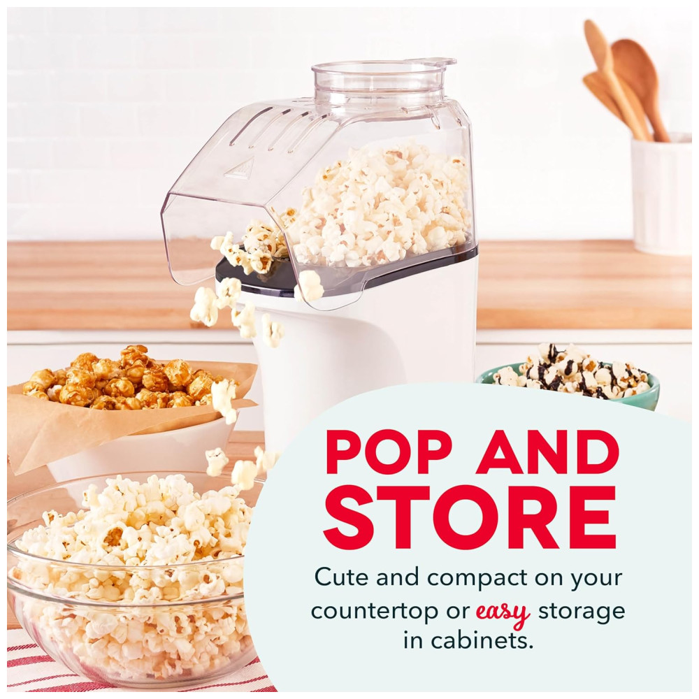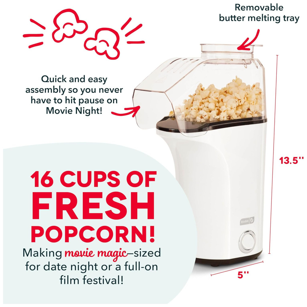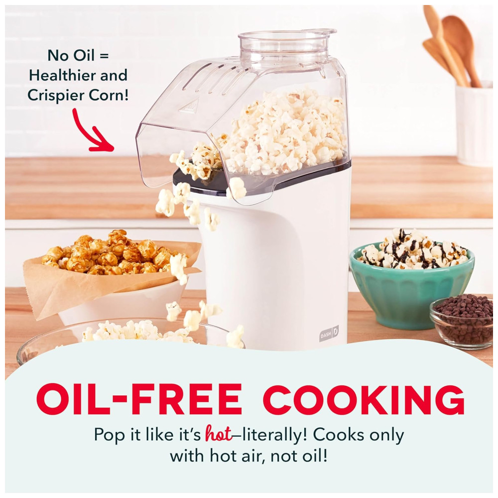Pipoqueira DASH Hot Air Popcorn Popper com Copo Medidor para Medir Milho de Pipoca e Derreter Manteiga 16 Copos Branca