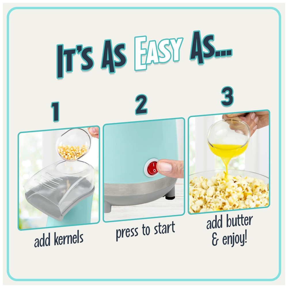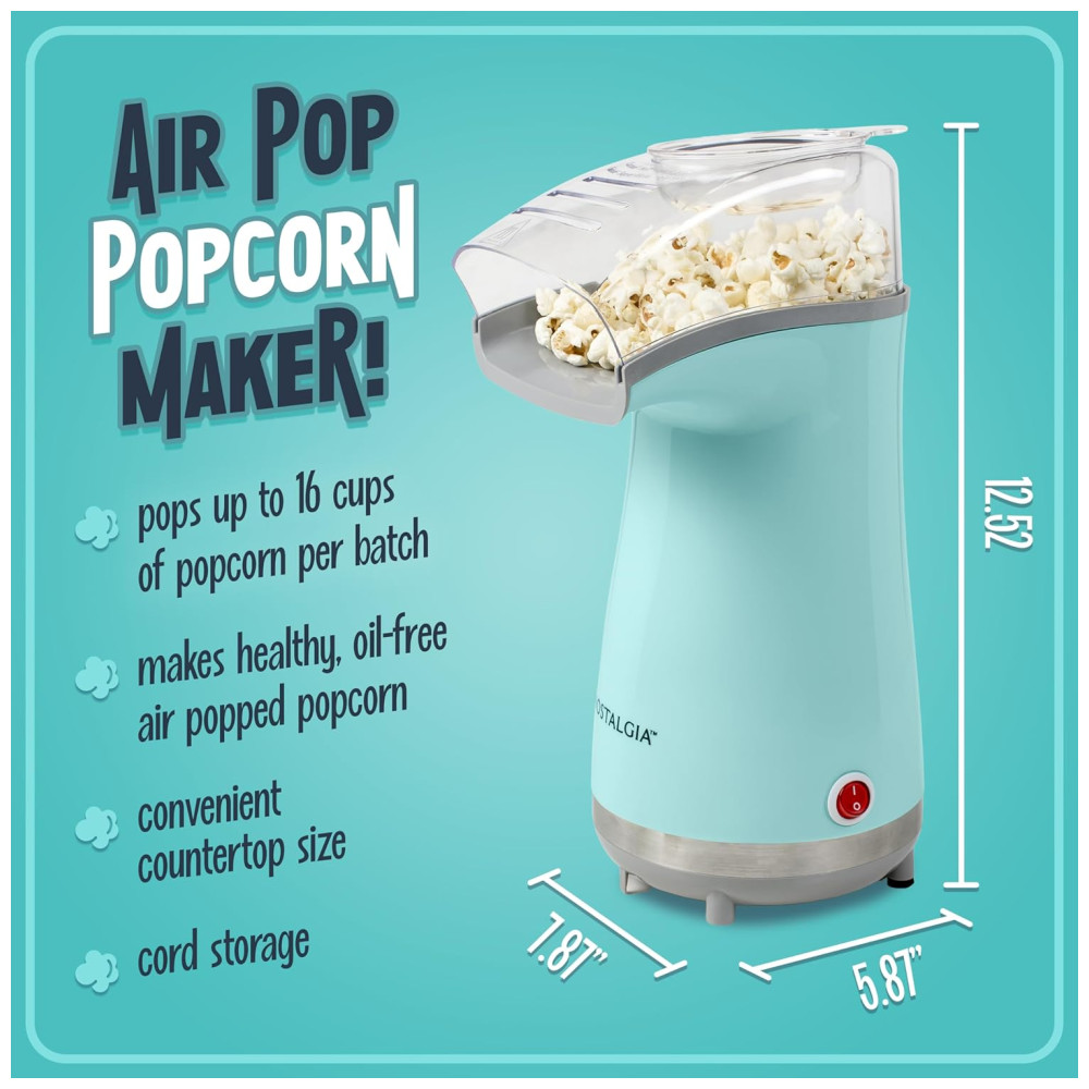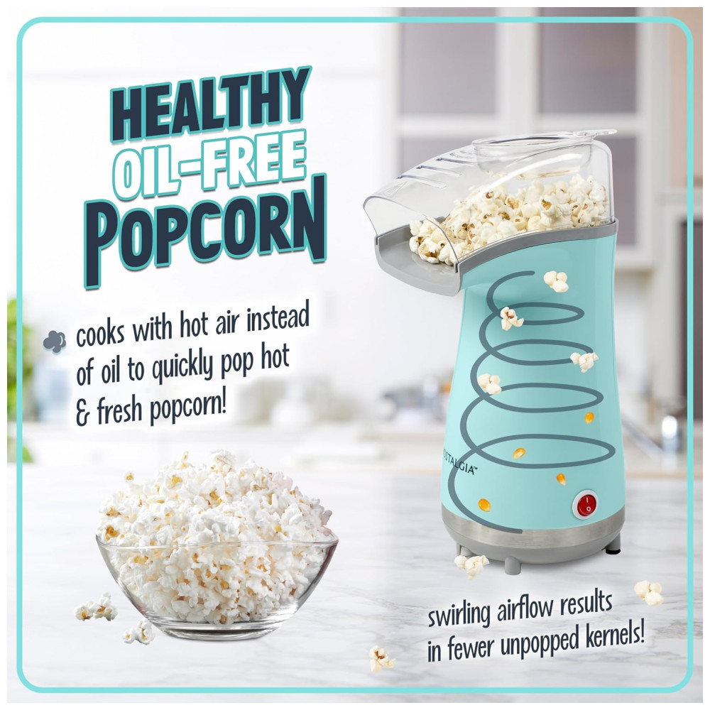 Pipoqueira de Ar Quente Nostalgia 38 Litros: Pipocas Crocantes sem Óleo – Medidor de Milho – Design em Inox Aqua – Saúde e Sabor!