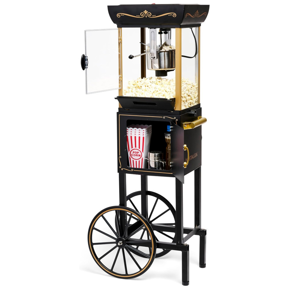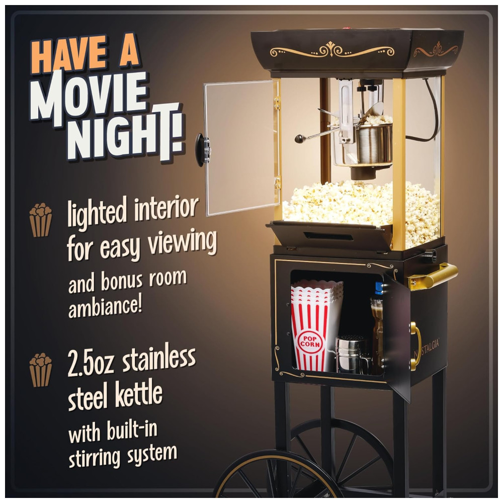 Pipoqueira Elétrica Carrinho Profissional Faz até 10 Xicaras com Panela de 76 mL 110V Nostalgia Preta