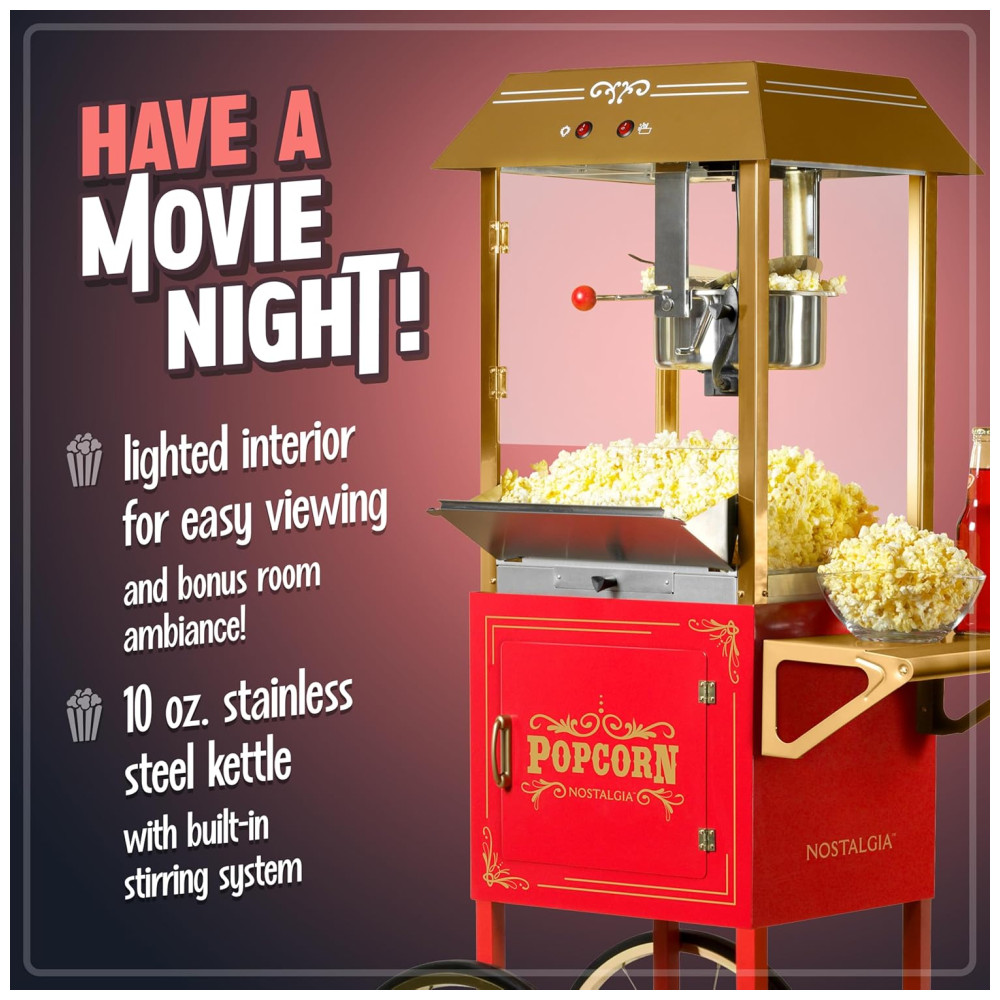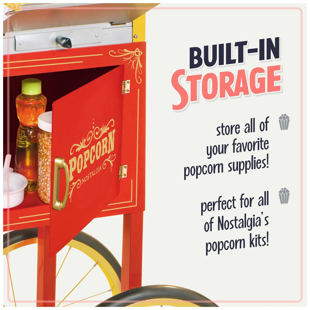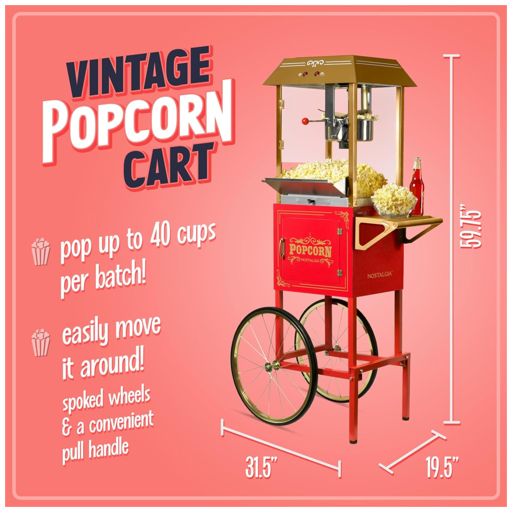 Pipoqueira Elétrica Carrinho Profissional Faz até 40 Xicaras com Panela de 295 mL Nostalgia 110V Vermelha e Dourado