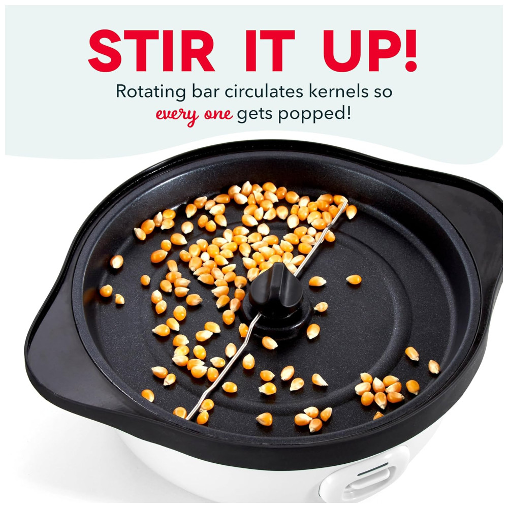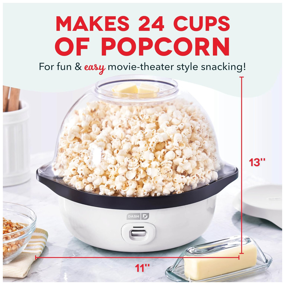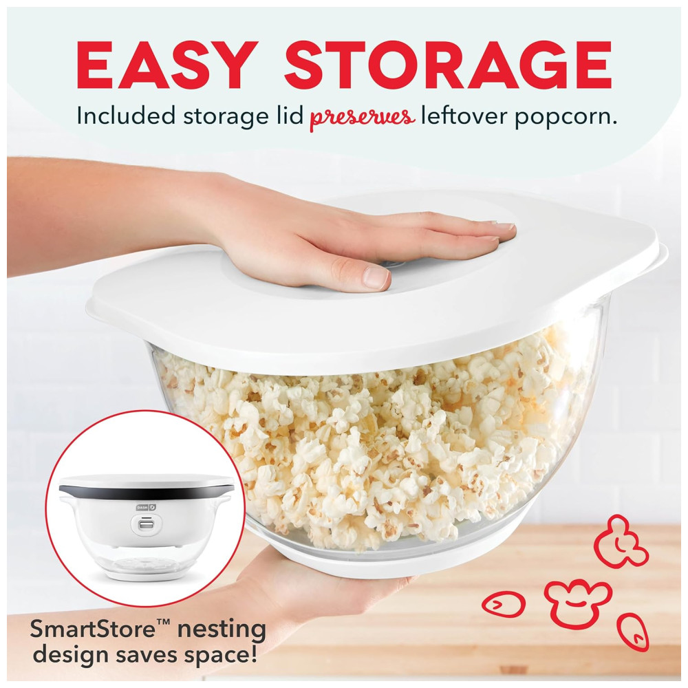 Pipoqueira Elétrica DASH SmartStore Deluxe Stirring Máquina de Pipoca com Tampa Grande para Servir e Armazenar 24 Copos – Branca