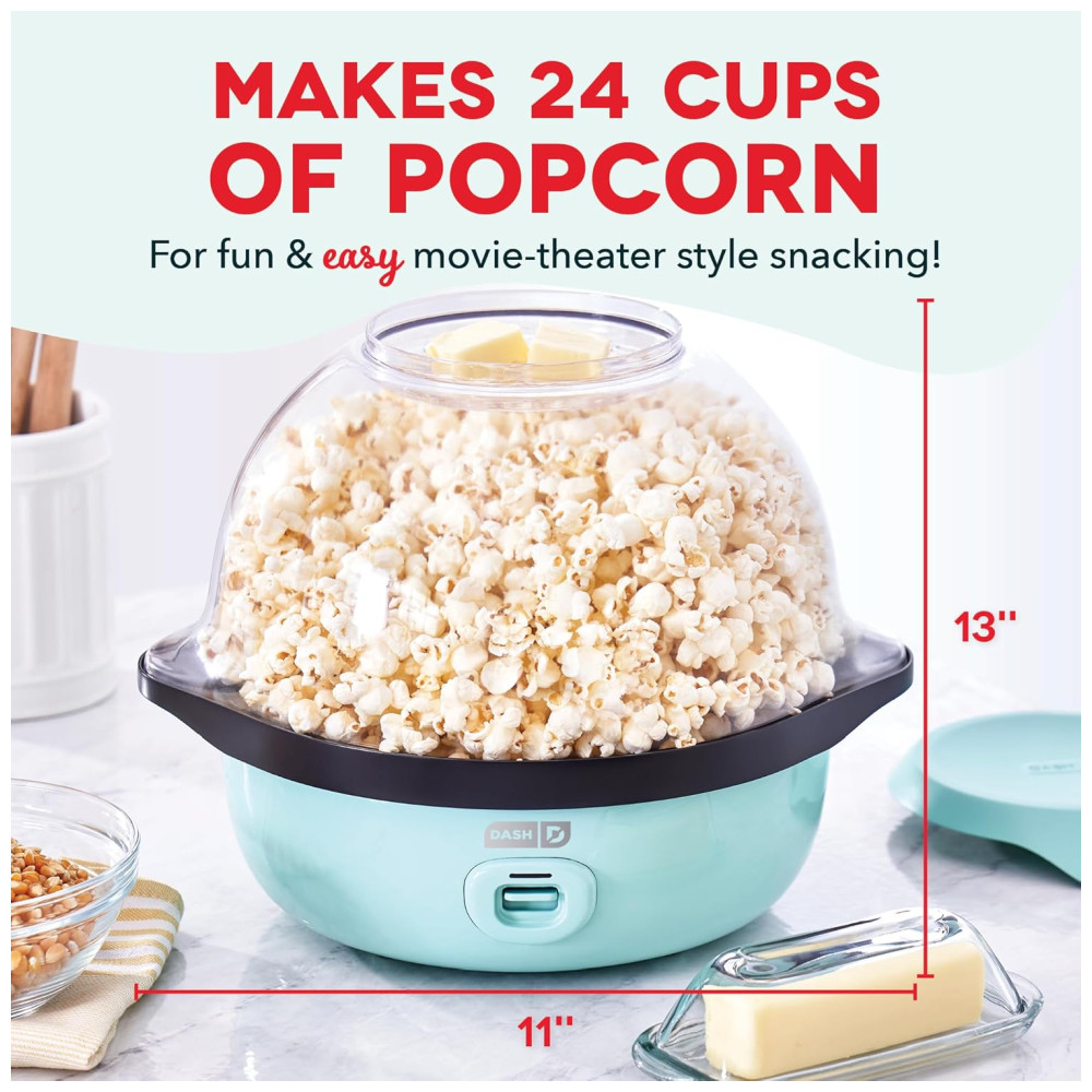 Pipoqueira Elétrica DASH SmartStore Deluxe Stirring Prepara até 24 xícaras de Pipoca Fresca com Toque de Um Botão – 24 Copos na Cor Aqua