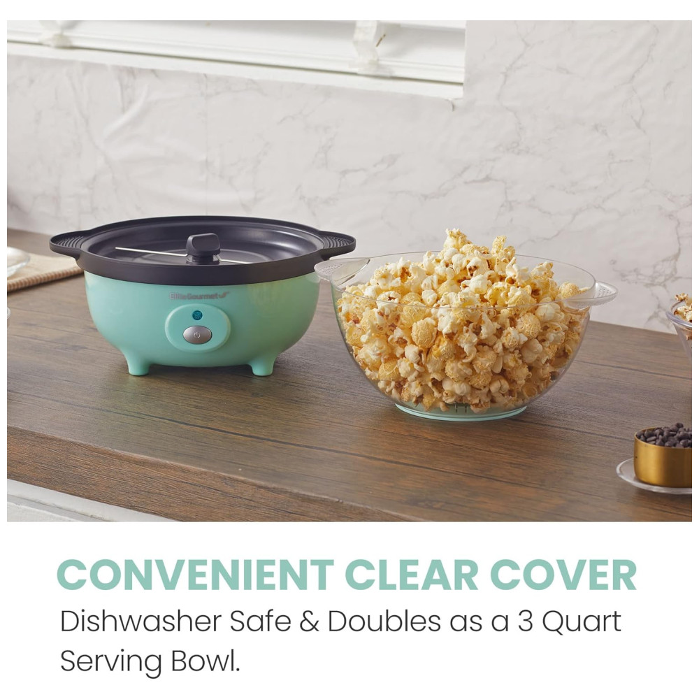 A pipoca é um lanche delicioso e saudável para desfrutar a qualquer momento com a família e amigos. A Pipoqueira Automática Elite Gourmet é perfeita para adicionar alegria em festas, churrascos ou sessões de cinema em casa. Com capacidade para fazer até 3 litros de pipoca em cerca de 4 minutos, graças à placa de aquecimento antiaderente que garante um desempenho superior. Sua tampa transparente não só permite visualizar os grãos estourando, mas também se transforma em uma tigela para servir a pipoca após o preparo. O botão liga/desliga ativa a superfície de aquecimento e agita as hastes, garantindo que todos os grãos sejam estourados sem queimar. Após o uso, é fácil limpar a superfície antiaderente e a tampa pode ser lavada na lava-louças. Desfrute de pipoca fresca e saborosa em casa com rapidez, sem a necessidade de pré-aquecimento, graças à tecnologia de aquecimento rápido. A haste motorizada garante um aquecimento uniforme, resultando em pipocas crocantes e frescas. Não contém conservantes, permitindo que você adicione seus próprios sabores como queijo, manteiga, sal e muito mais. O design ventilado da tampa evita a formação de vapor, mantendo a pipoca crocante por mais tempo. A marca Elite Gourmet, com 40 anos de tradição, garante qualidade e funcionalidade em todos os seus produtos de cozinha.