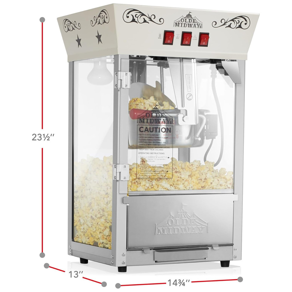 Pipoqueira Elétrica Faz até 108 kg de Pipoca com Panela de 226g e Copo Medidor 110V 850W Olde Midway Creme