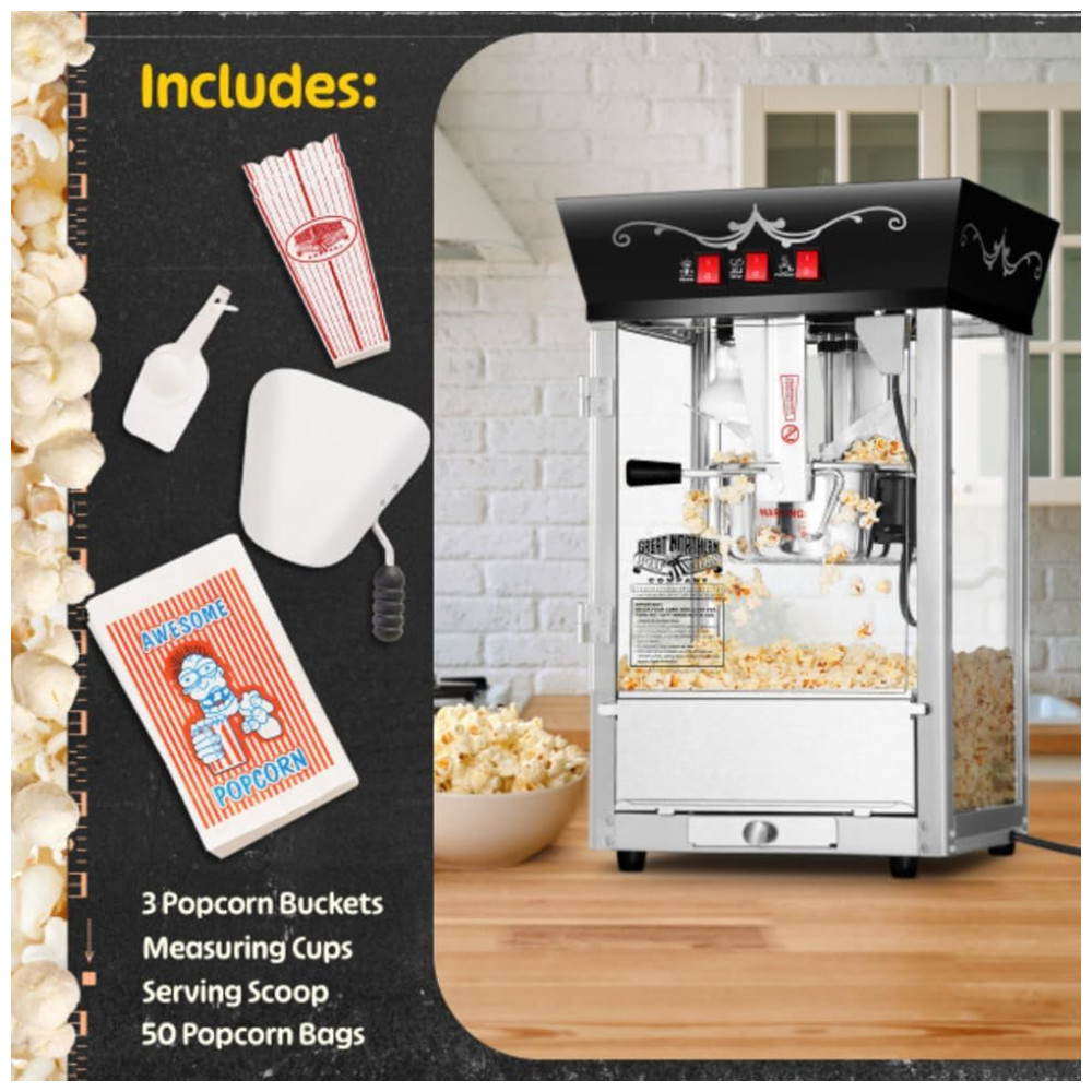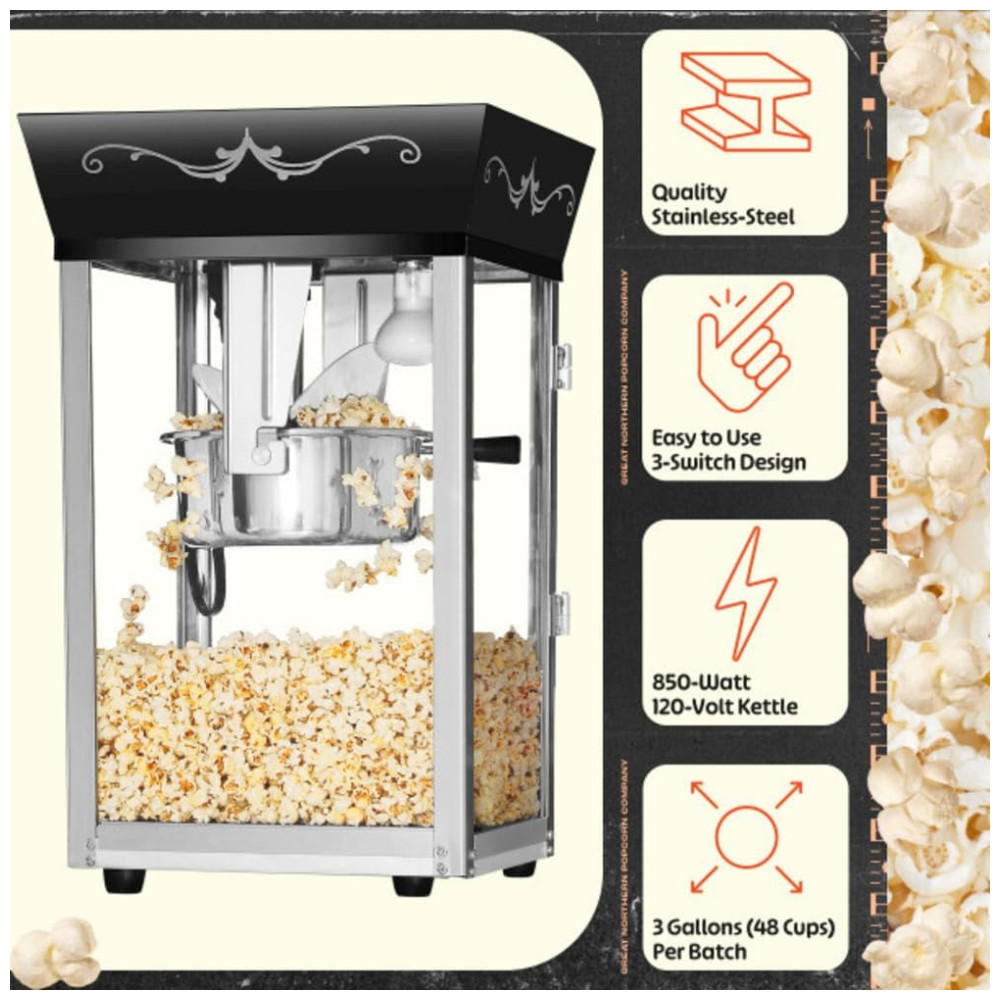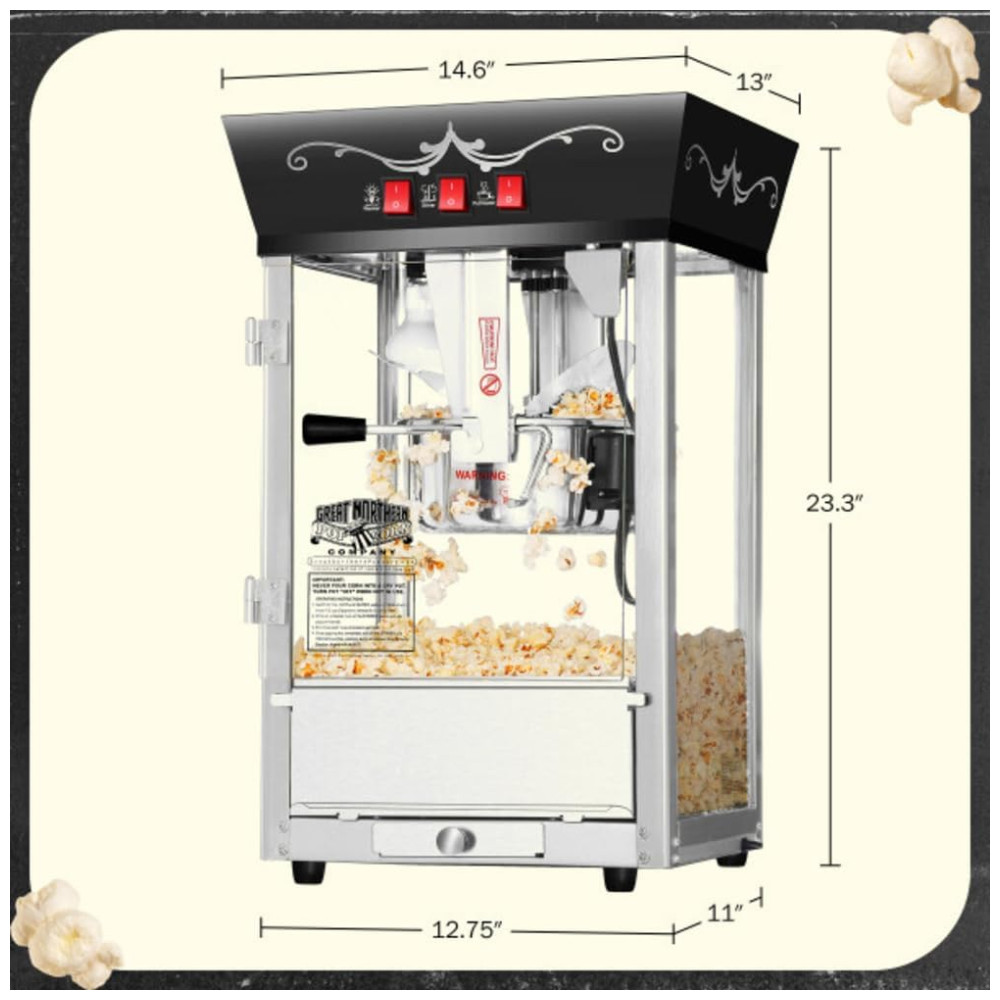 Pipoqueira Elétrica Faz até 108 kg de Pipoca com Panela de 226g Luz de Aquecimento e Acessórios 110V 850W Great Northern Popcorn Preta