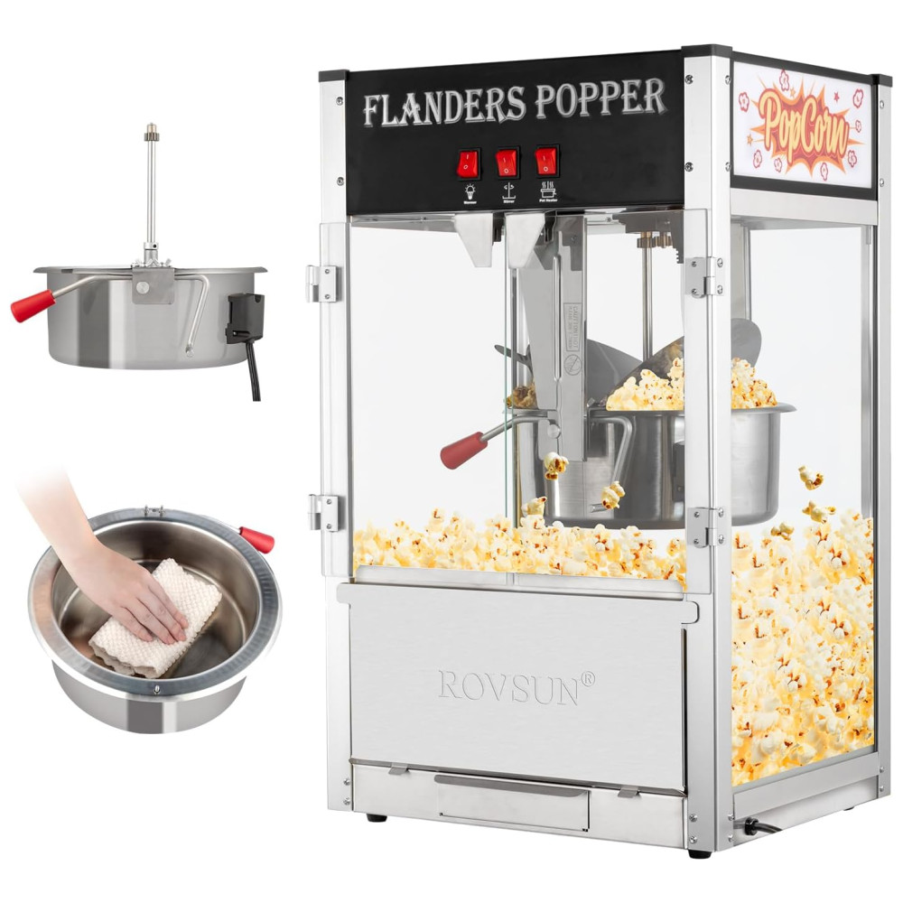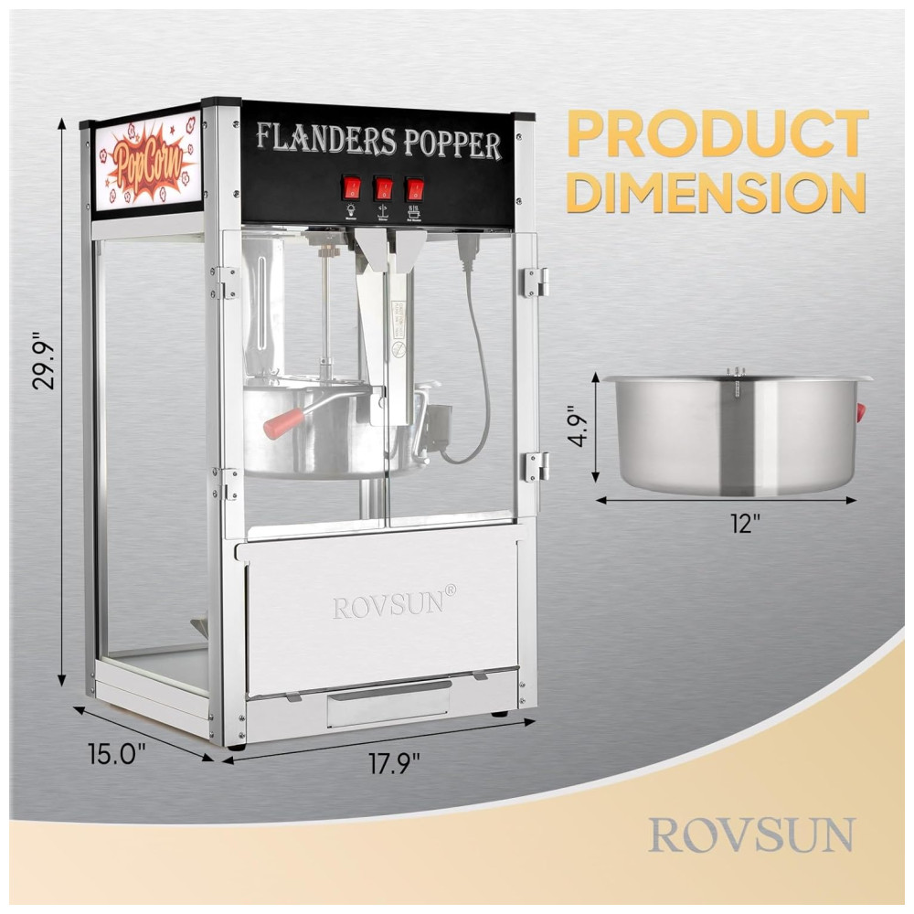 Esta máquina de fazer pipoca é uma excelente escolha para uso doméstico ou comercial em cinema, home theater, festas, etc. A chaleira de 450g é feita de aço inoxidável 304 e pode produzir até 25,3 kg de pipoca para atender grandes demandas.