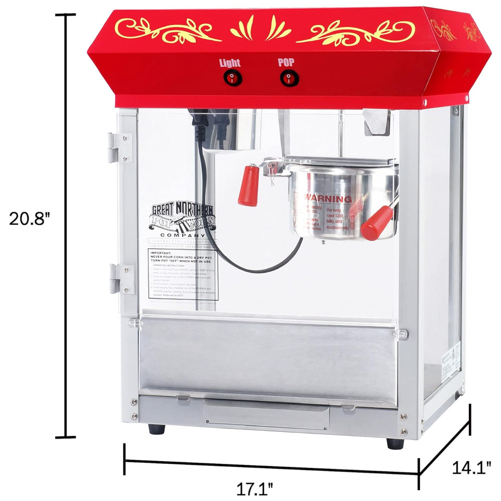 Pipoqueira Elétrica Faz até 53 kg de Pipoca com Panela de 170g Gaveta e Bandeja de Aquecimento 110V 640W Great Northern Popcorn Vermelha
