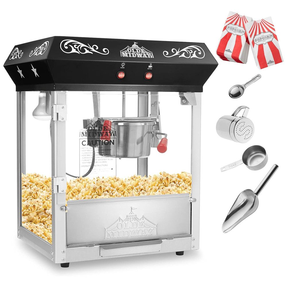 Pipoqueira Elétrica Faz até 66 kg de Pipoca com Panela de 113g e Copo Medidor 110V 640W Olde Midway Preta