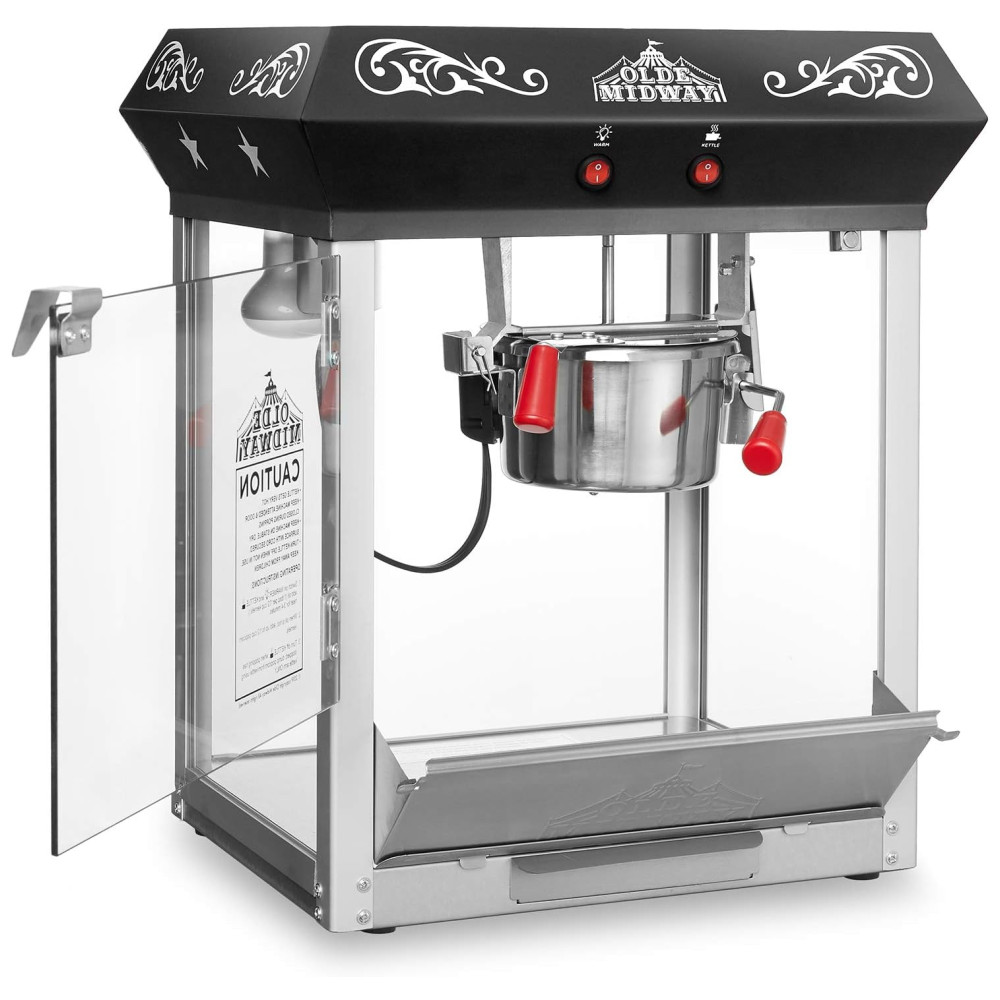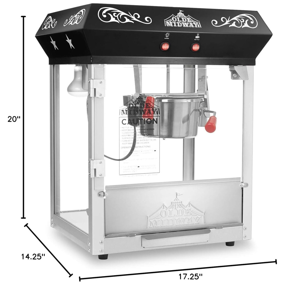 A máquina de pipoca de mesa estilo antigo Olde Midway 113g é perfeita para quem deseja fazer pipoca gourmet estilo cinema em qualquer lugar. Com um design retrô e materiais altamente duráveis, como aço com revestimento em pó resistente e zonas de alimentos em aço inoxidável, paredes de vidro de segurança temperado, tinta premium vibrante e ricamente pigmentada e um motor potente de qualidade comercial, esta máquina de pipoca de luxo foi construída para durar.
