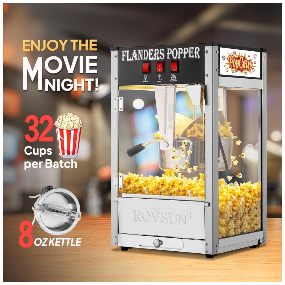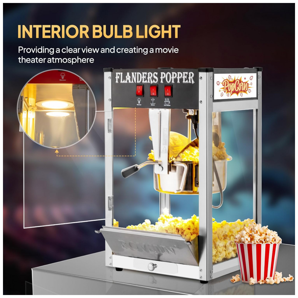 Pipoqueira Elétrica Profissional Produz até 32 Xícaras de Pipoca 110V 850W ROVSUN Prata