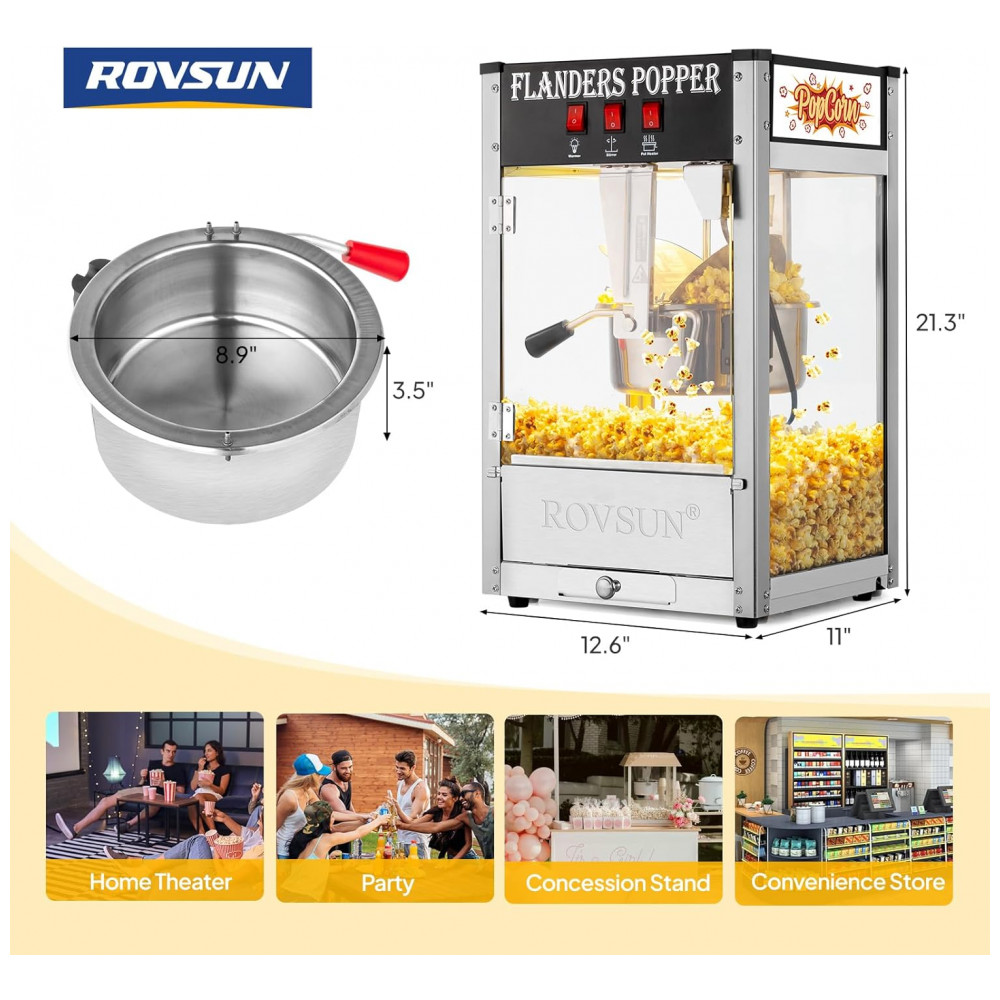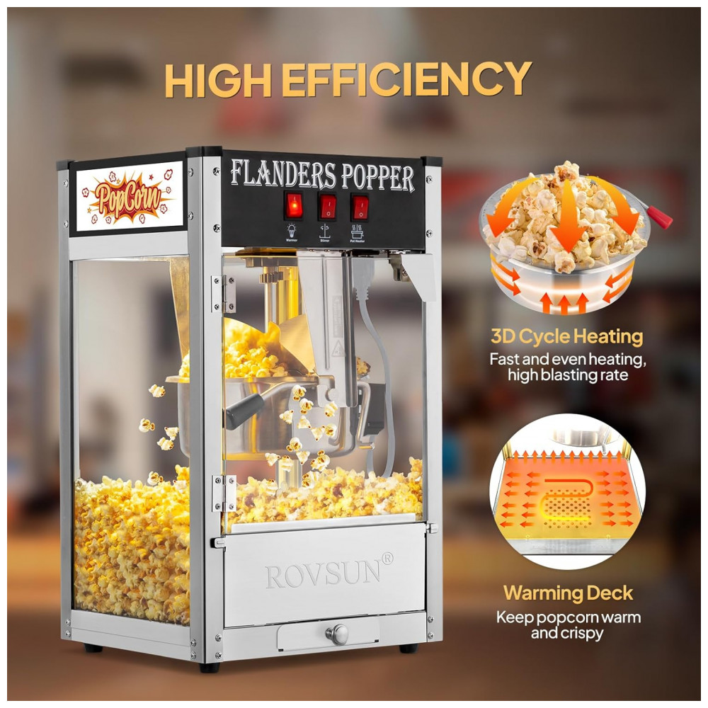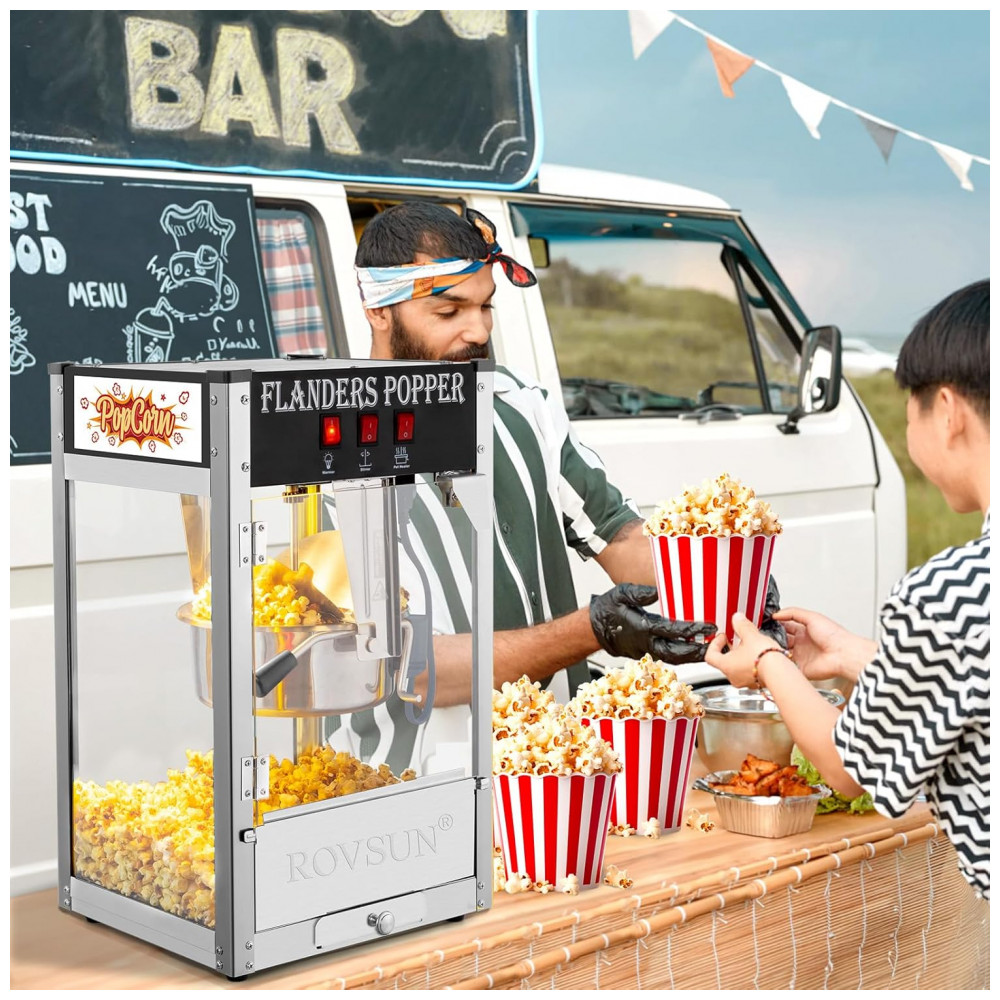 Pipoqueira Elétrica Profissional Produz até 32 Xícaras de Pipoca Aço Inoxidável 110V 850W ROVSUN
