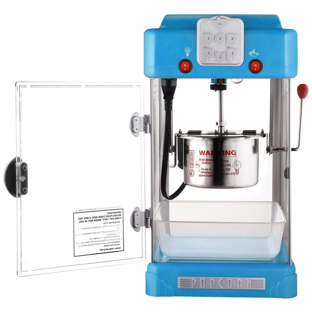 MODELO COUNTERTOP Esta pequena máquina de pipoca de 330W listada na ETL tem um design atraente em estilo vintage, destinado a capturar a sensação nostálgica de um cinema, em um tamanho compacto que certamente caberá em qualquer balcão ou mesa.