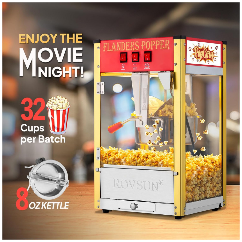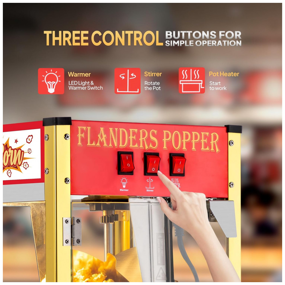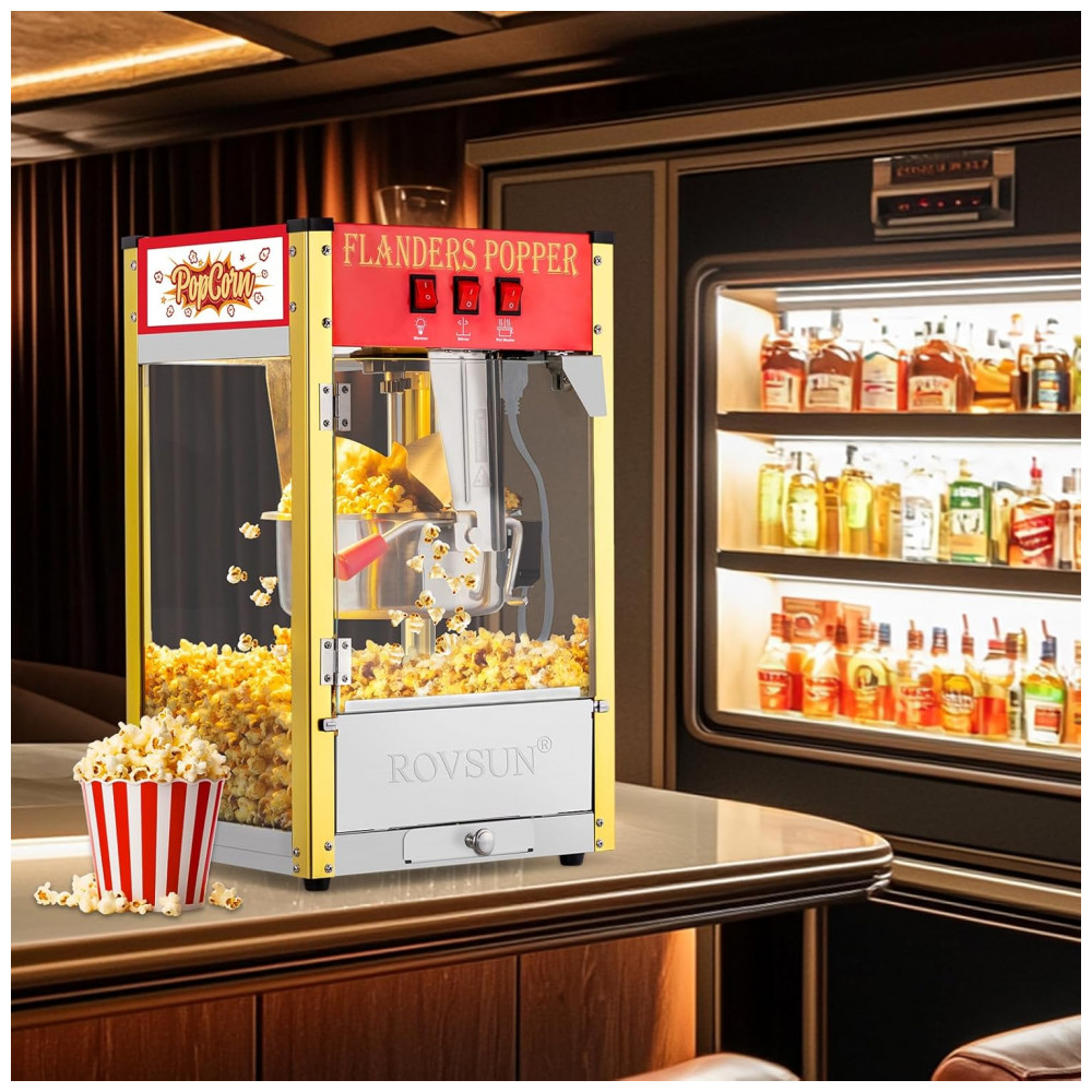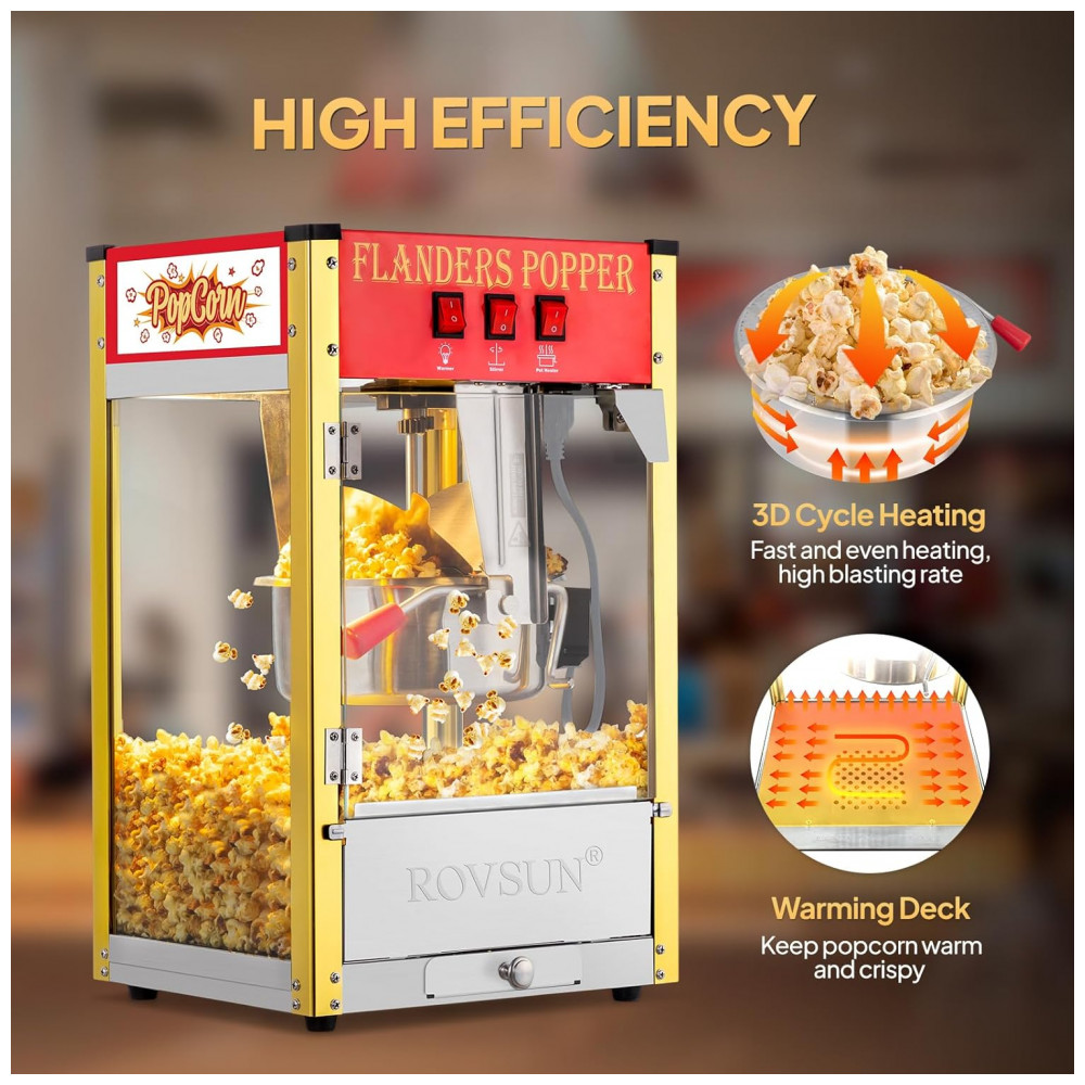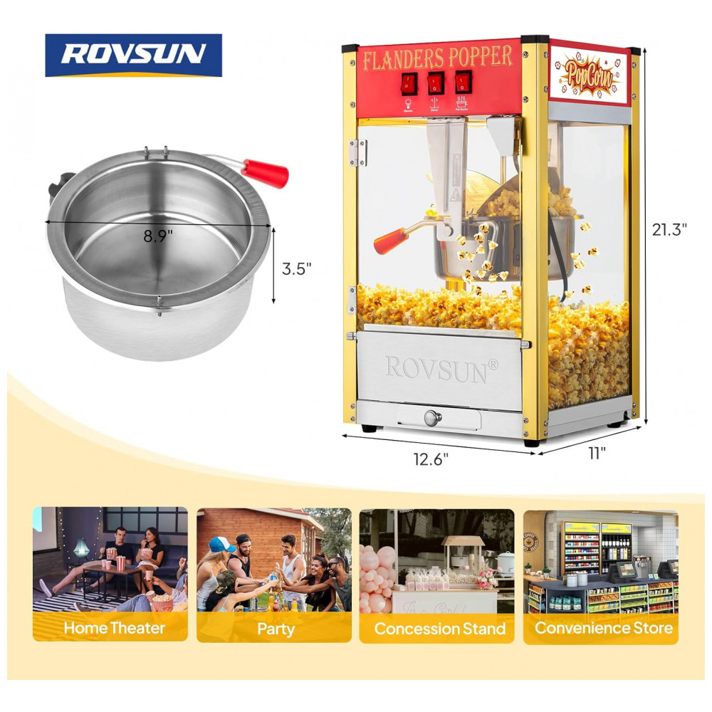 Pipoqueira Elétrica Retrô Produz até 32 Xícaras Aço Inoxidável 110v ROVSUN Vermelho