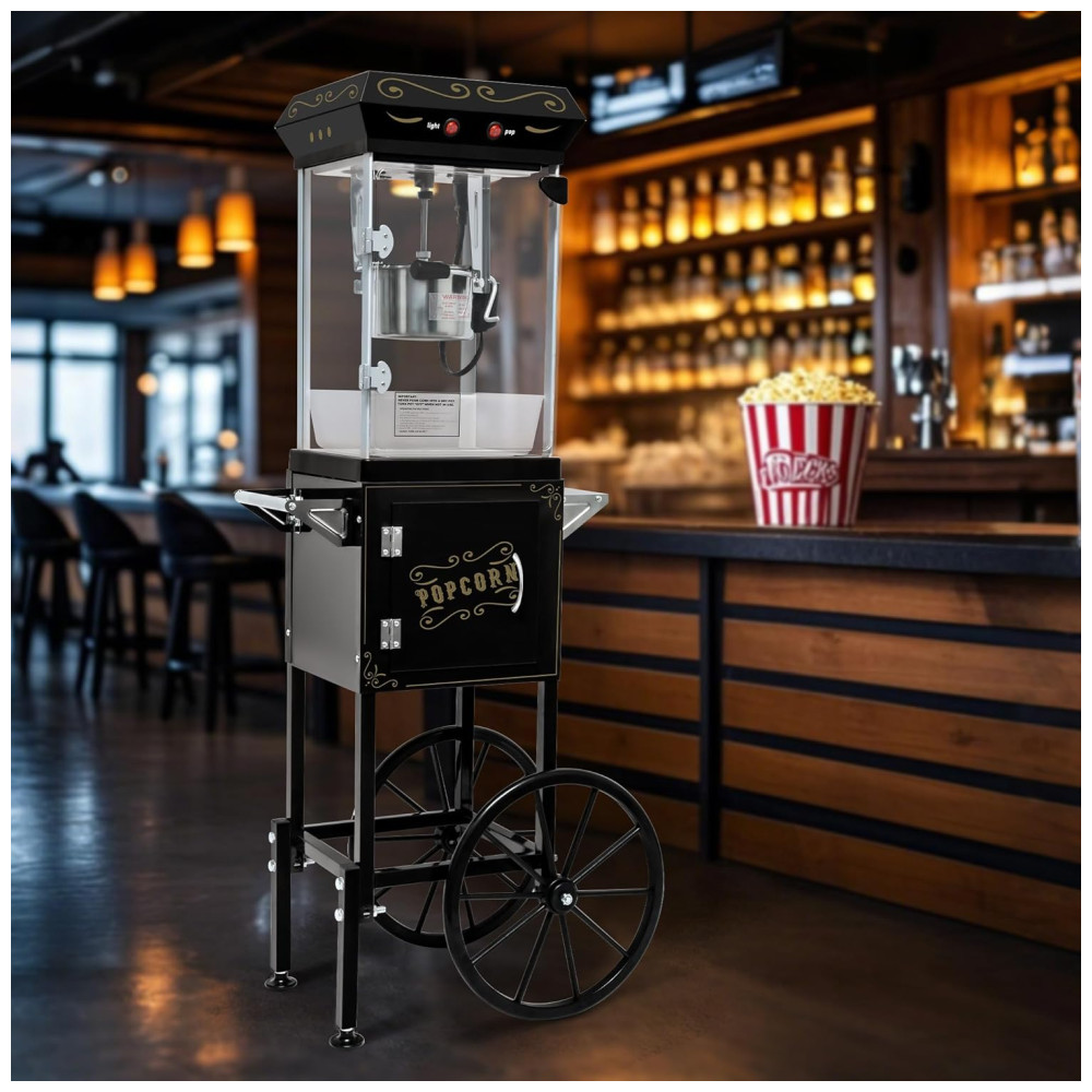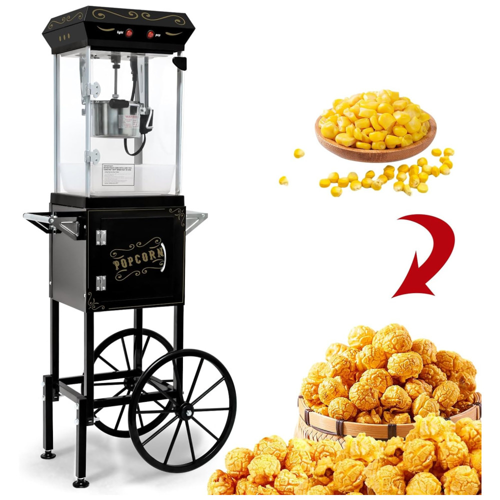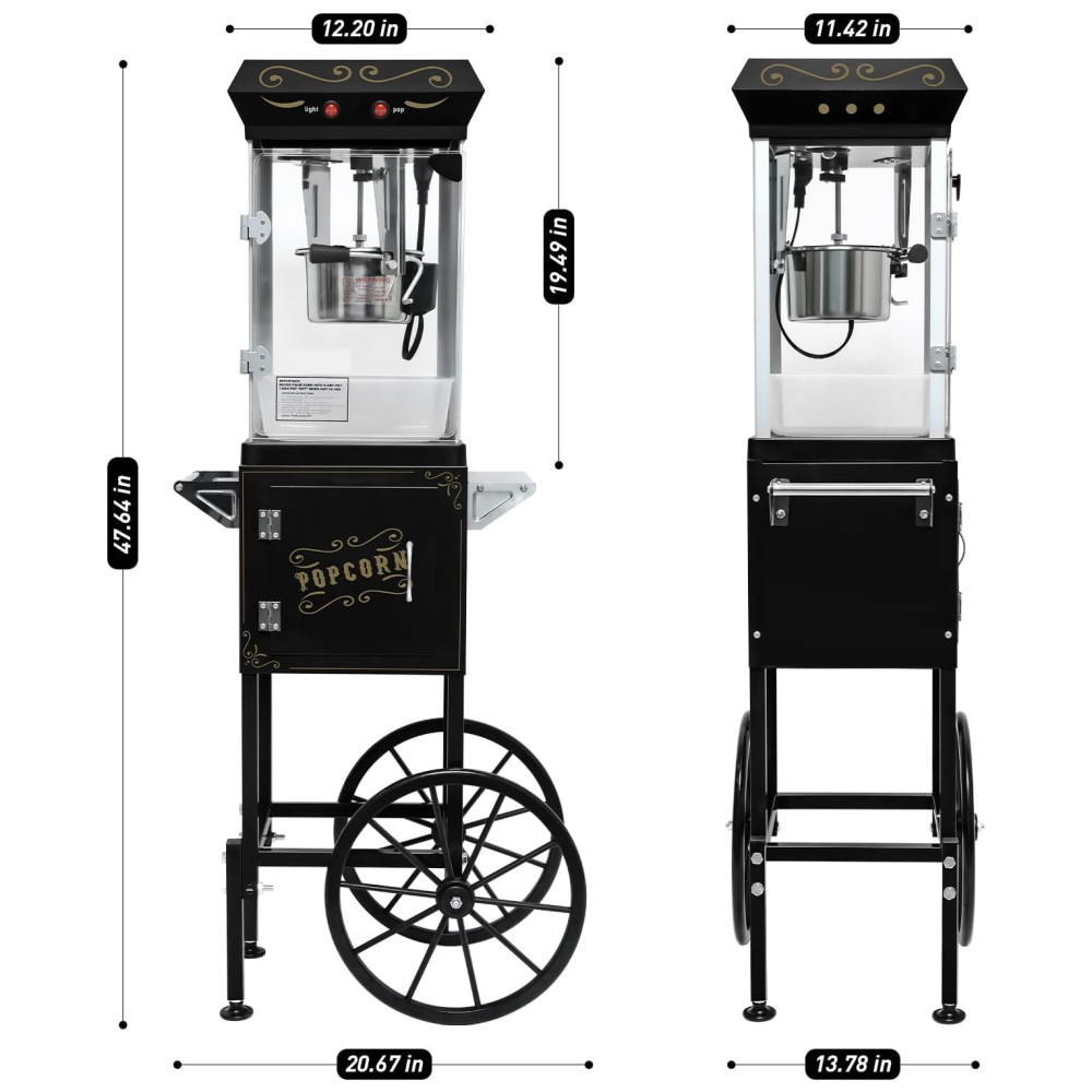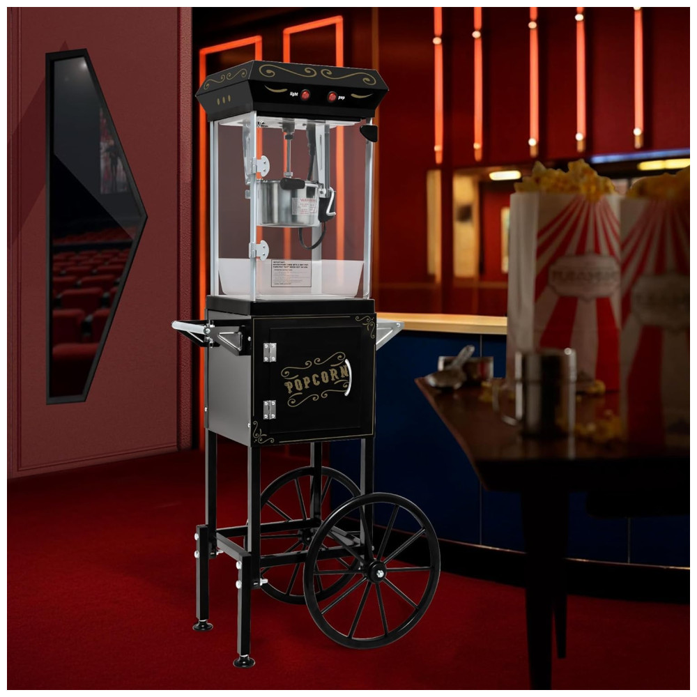 Pipoqueira Retro 170g com Carrinho Acessórios Estilo Cinema Ideal para Casa Festa Parque PretoWiilayok