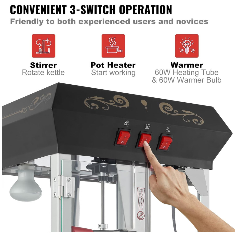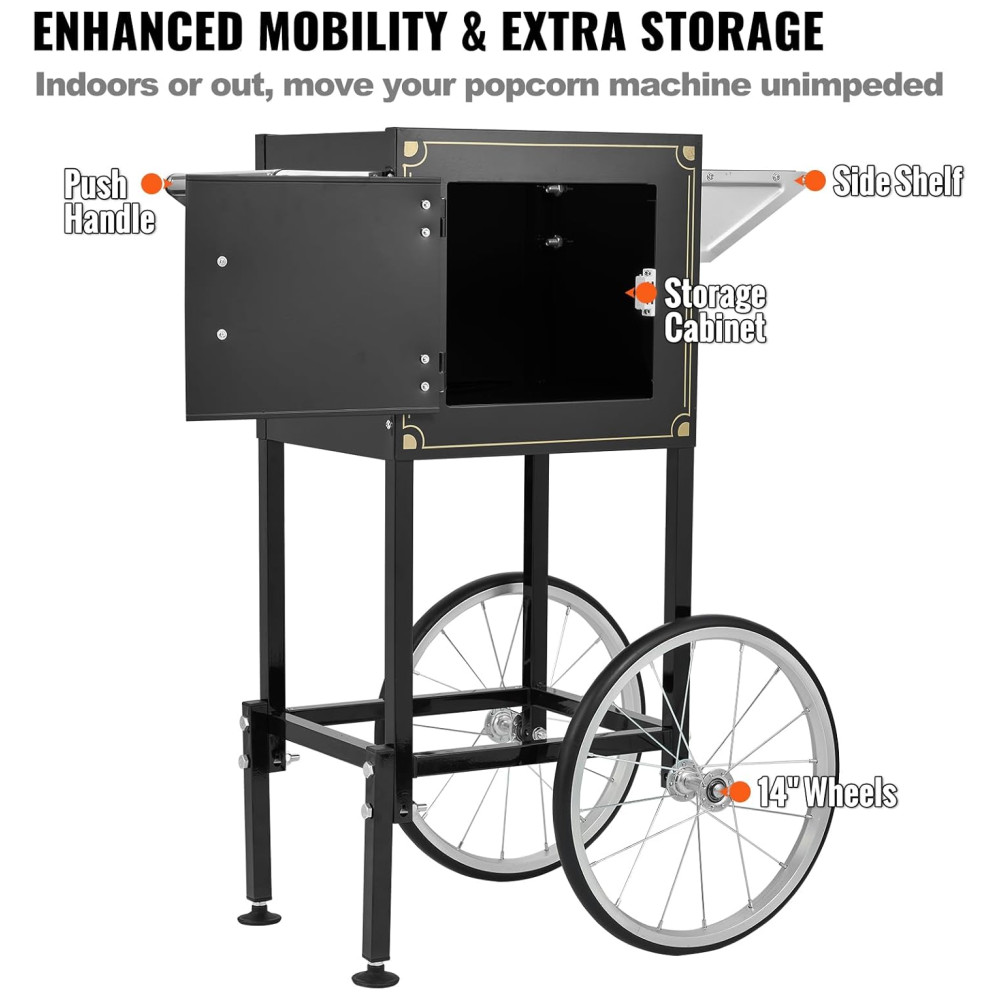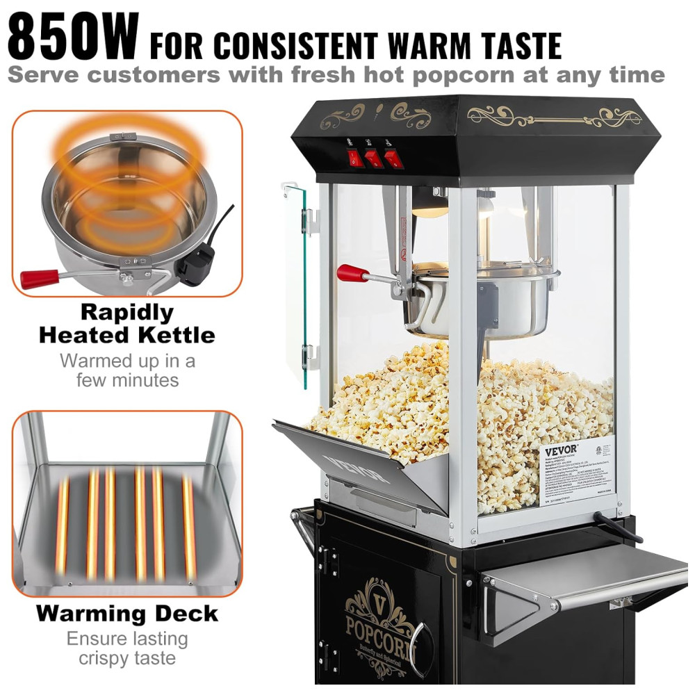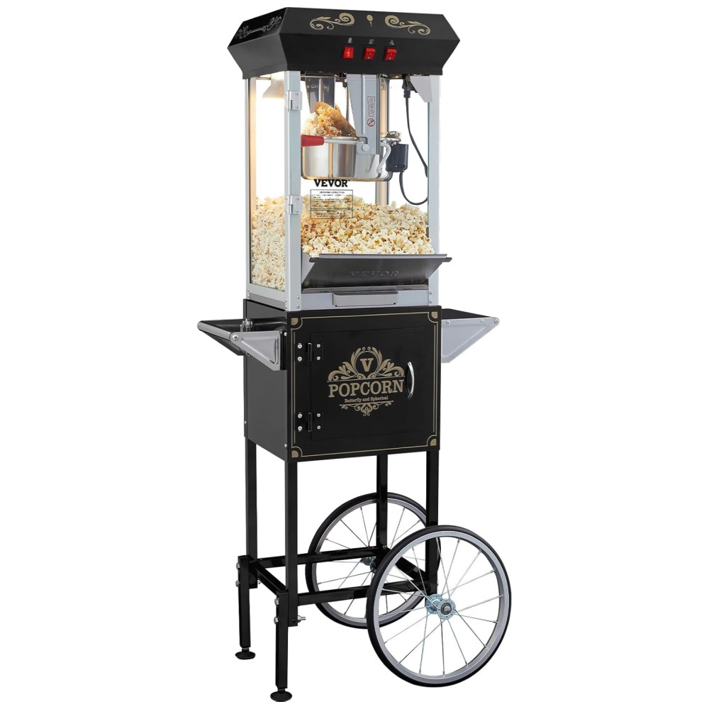 Pipoqueira VEVOR com Carrinho 850W 8 Oz Faz 48 Copos Vidro Temperado 4 Colheres Medidoras