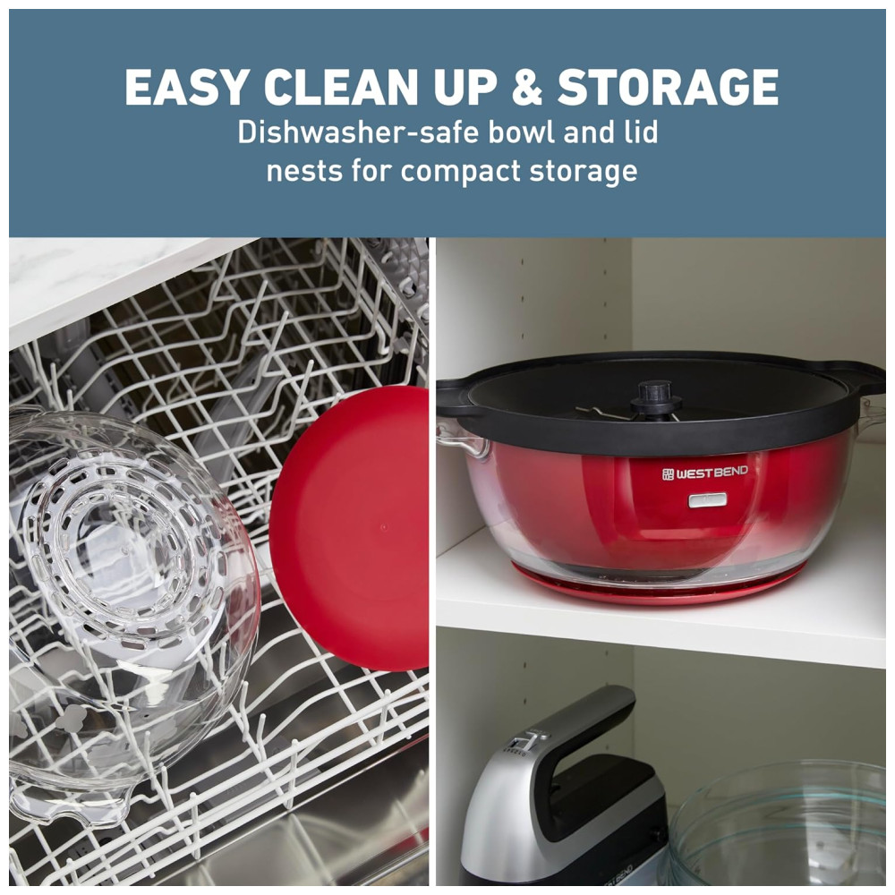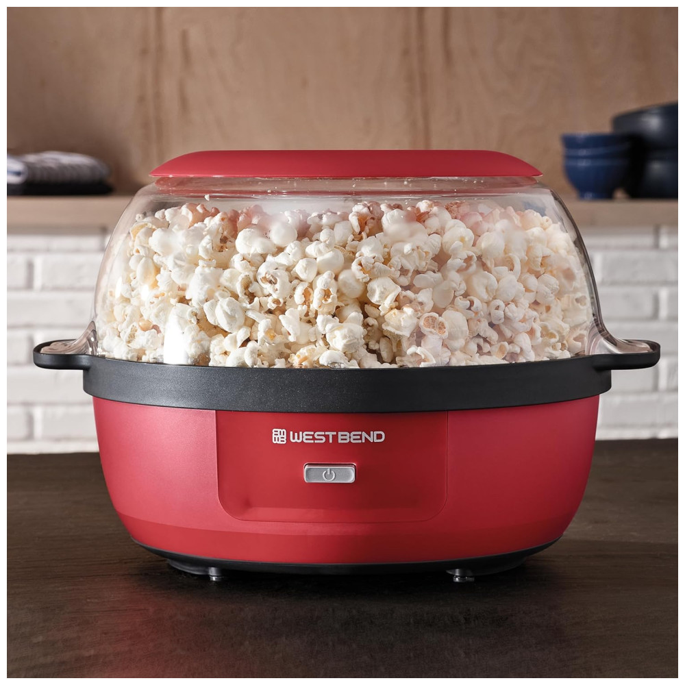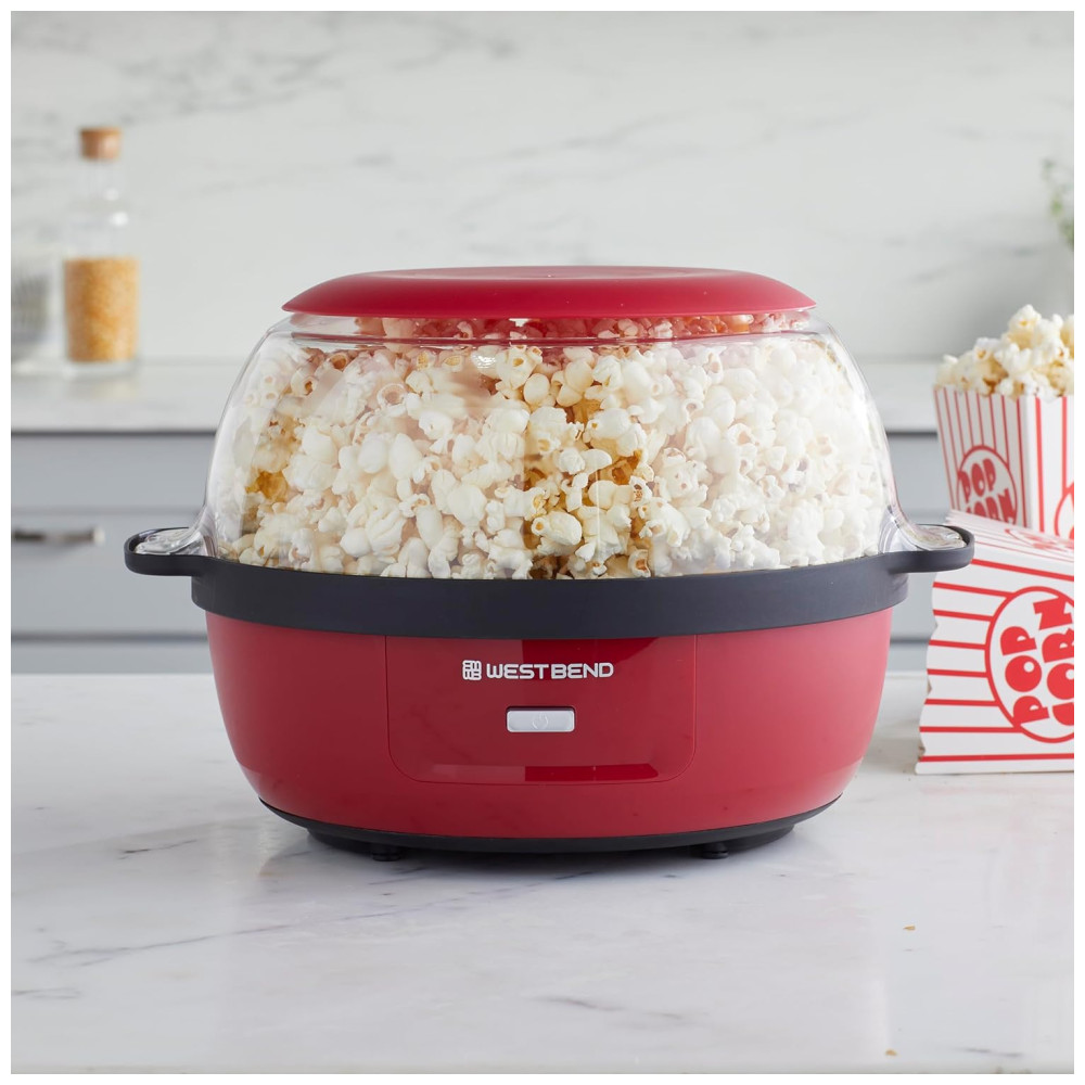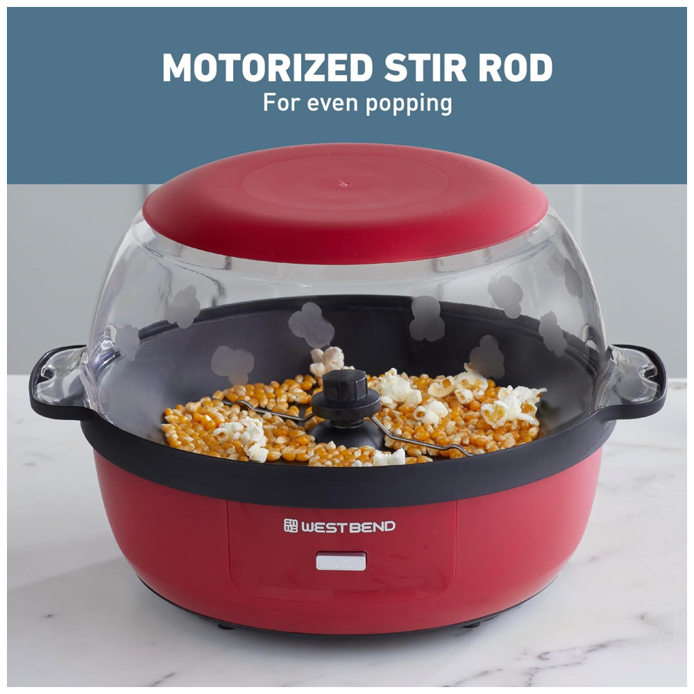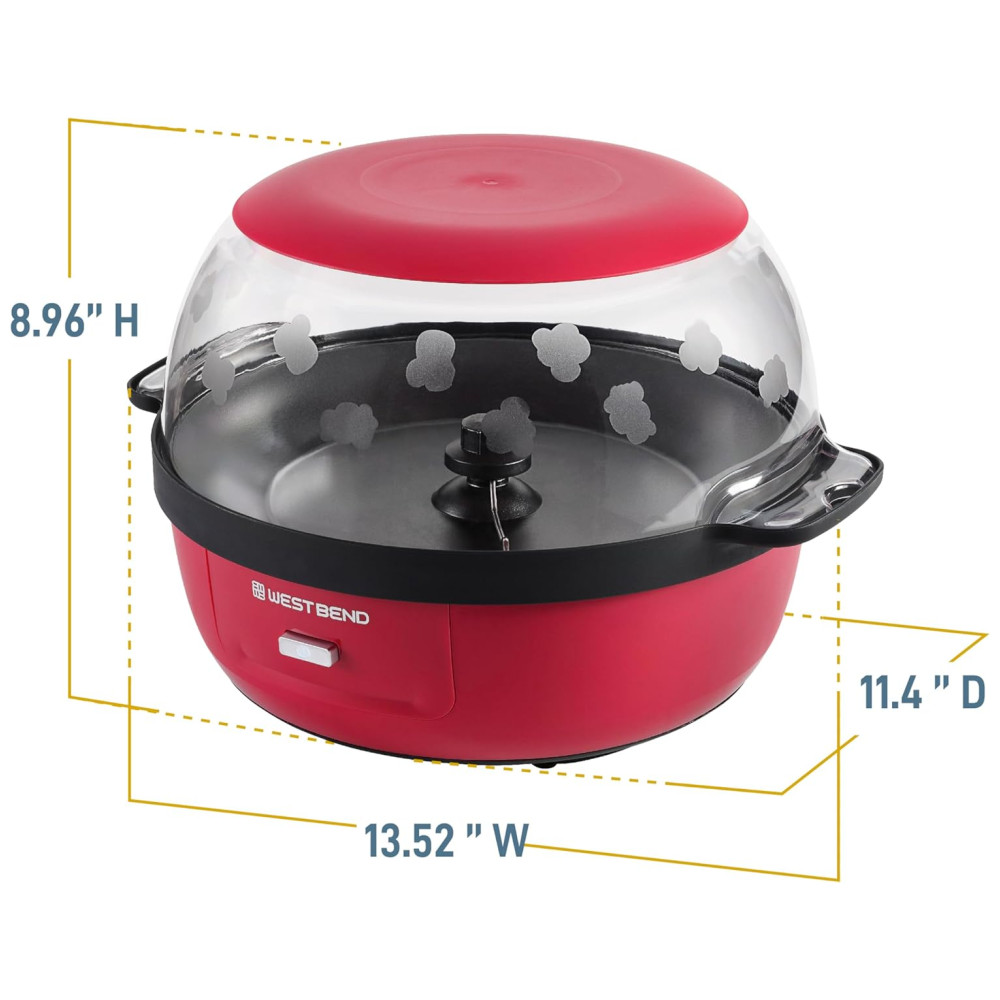 Pipoqueira West Bend Stir Crazy Hot Oil Popcorn Popper Máquina de Fazer Pipoca com Tigela de Servir Grande e Haste MisturadoraVermelha