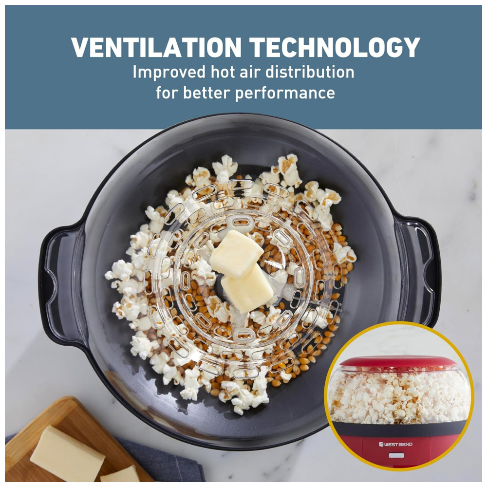 Transforme a hora do lanche em momentos fáceis e divertidos para sua família e amigos com a Pipoqueira West Bend Stir Crazy. Com capacidade para até 24 xícaras por vez, esta máquina de fazer pipoca é ideal para as noites de filmes em família. A haste misturadora motorizada garante um estouro uniforme, com reversão automática para evitar que os grãos fiquem presos. A tampa ventilada de uso duplo pode ser usada com a tampa como tigela de servir. Derreta a manteiga diretamente na sua pipoca enquanto estoura para sabores adicionais. Um simples botão liga/desliga torna a operação fácil. A base possui alças resistentes ao calor com recortes especiais que facilitam o virar quando a pipoca estiver pronta para servir com facilidade. A limpeza é fácil com a superfície antiaderente e a tampa e tampa de manteiga que podem ir à lava-louças. A tigela e a tampa se encaixam perfeitamente para economizar espaço. Esteja pronto para servir uma deliciosa pipoca para lanches diários, noites de filmes em casa ou qualquer ocasião divertida. PIPPOCA PARA TODOS! Capacidade ideal para noites de filmes em família. TECNOLOGIA DE VENTILAÇÃO: Distribuição aprimorada de ar quente para melhor desempenho. HASTE MISTURADORA: Para estouro uniforme. TAMPA DE USO DUPLO: Tampa ventilada que também serve como tigela. ALÇAS APERFEIÇOADAS: Alças resistentes ao calor com recortes para facilitar o serviço.