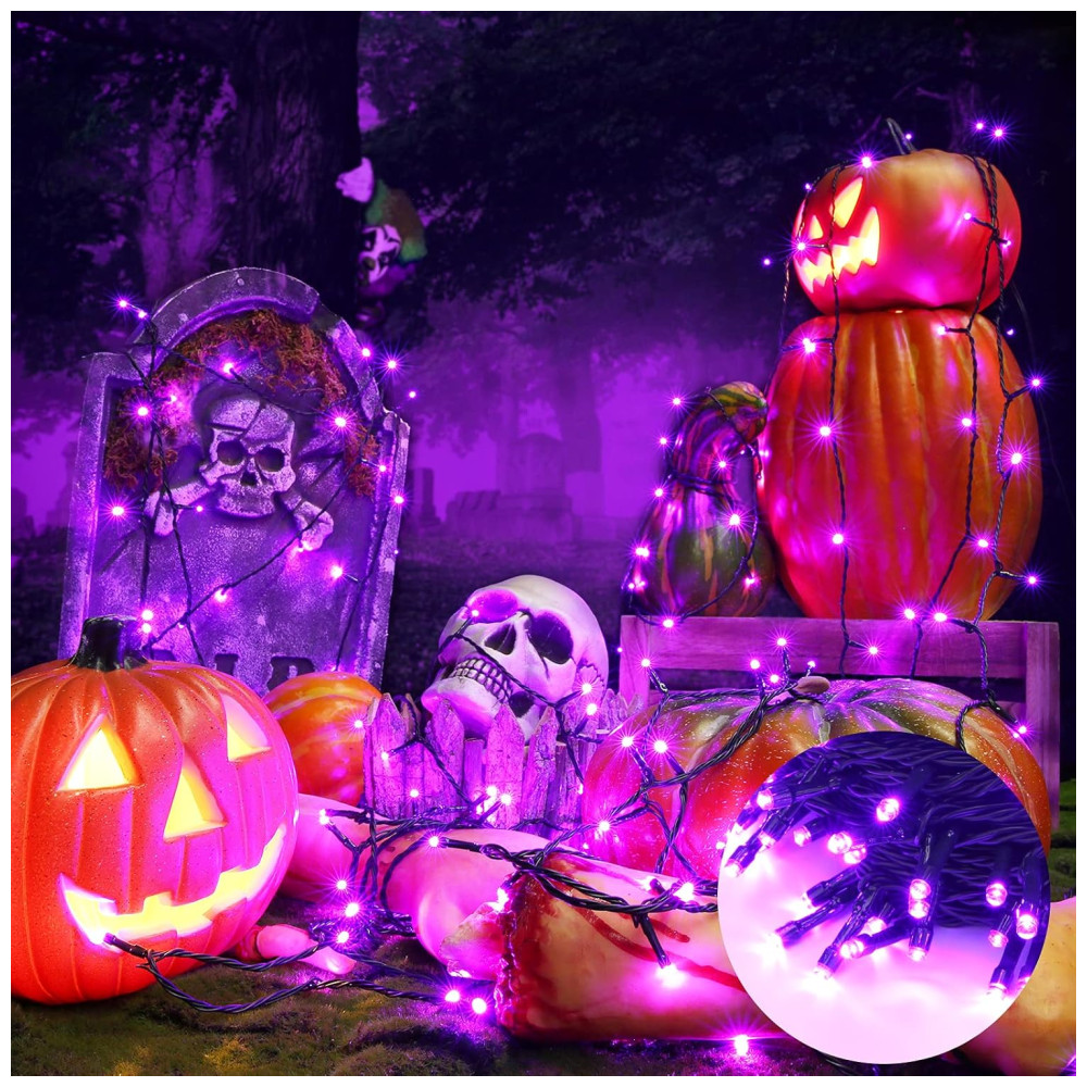 Luzes da decoração do Halloween: 350 lâmpadas mini LED super brilhantes iluminadas em barbante super longo de 39,93 metros, o suficiente para caber em qualquer espaço interno e externo, é a melhor decoração para o seu jardim ao ar livre, varanda, pátio, portão, árvore, Halloween, etc.