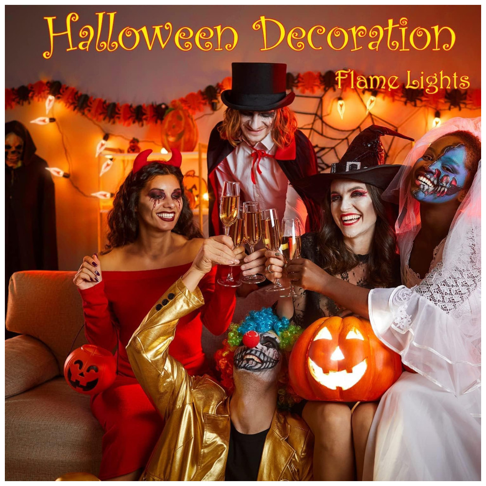 Design Exclusivo Efeito de Chama Realista: Nossas luzes de corda de chama cintilantes de Halloween criam um efeito cintilante e dançante que se assemelha a uma chama real por meio de uma combinação de design e tecnologia. Com seu design exclusivo e efeito de chama realista, essas luzes de corda de chama irão transportá lo para um mundo onde a magia e o mistério se entrelaçam.
