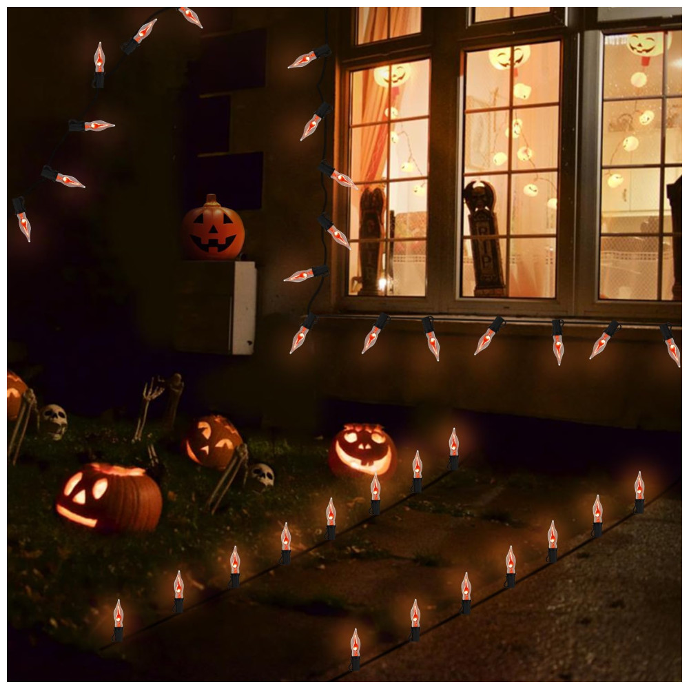 Crie uma Atmosfera Assustadora: As luzes de Halloween com um cabo de 843,6 centímetros são perfeitas para adicionar um toque misterioso às suas celebrações de Halloween. As chamas tremeluzentes dançam dentro de cada lâmpada transparente, lançando um feitiço encantador que cria uma atmosfera assombrada inesquecível e assustadora.