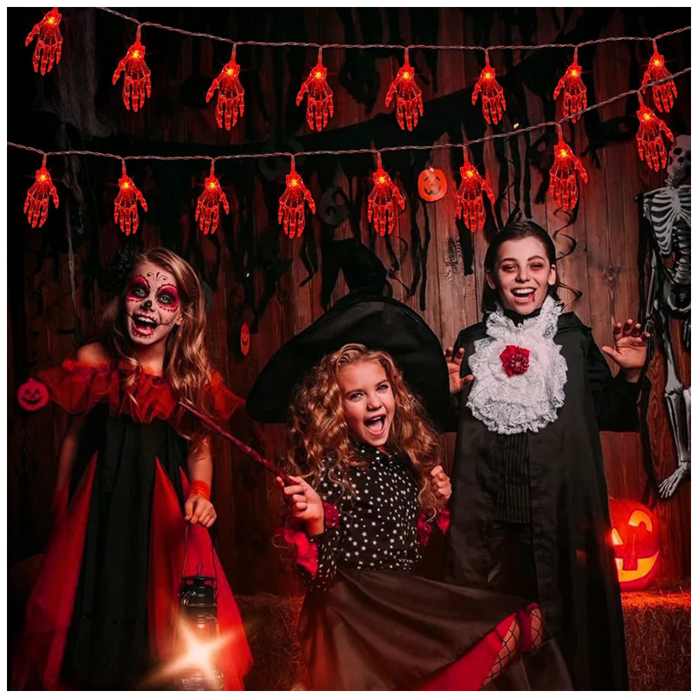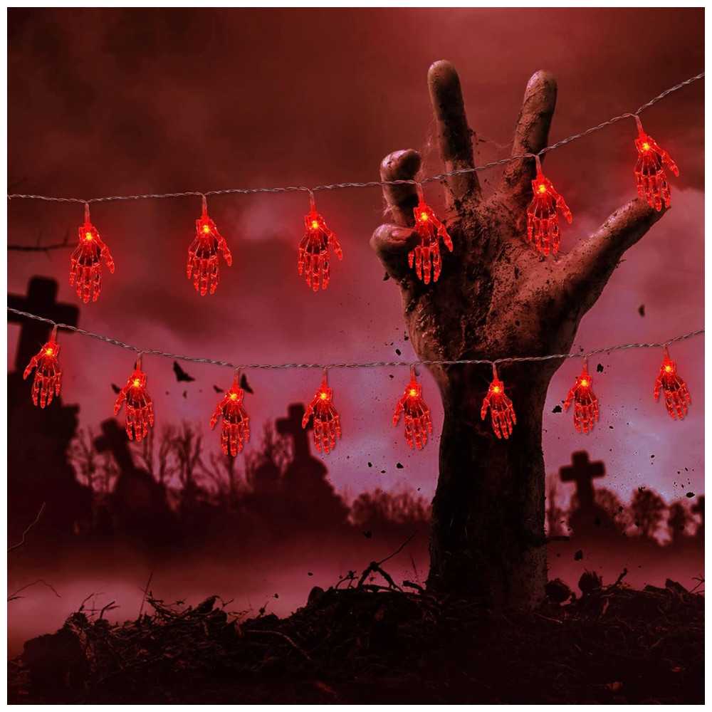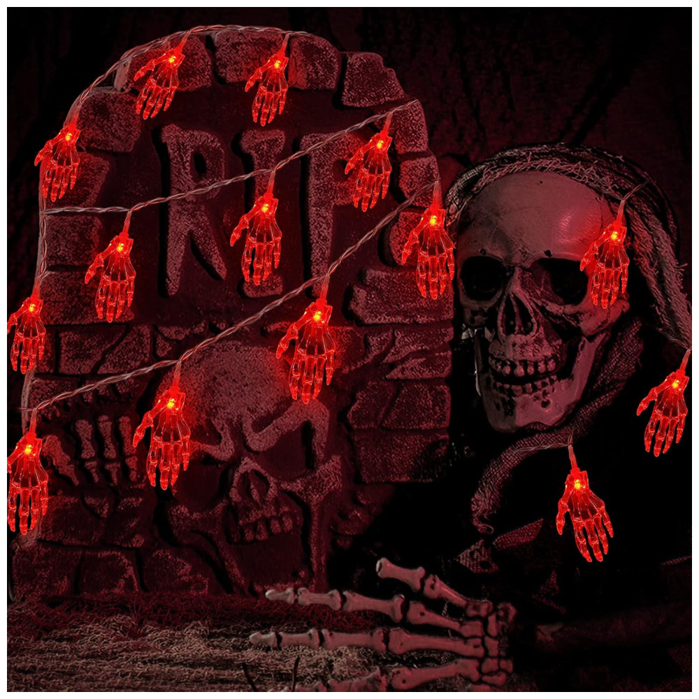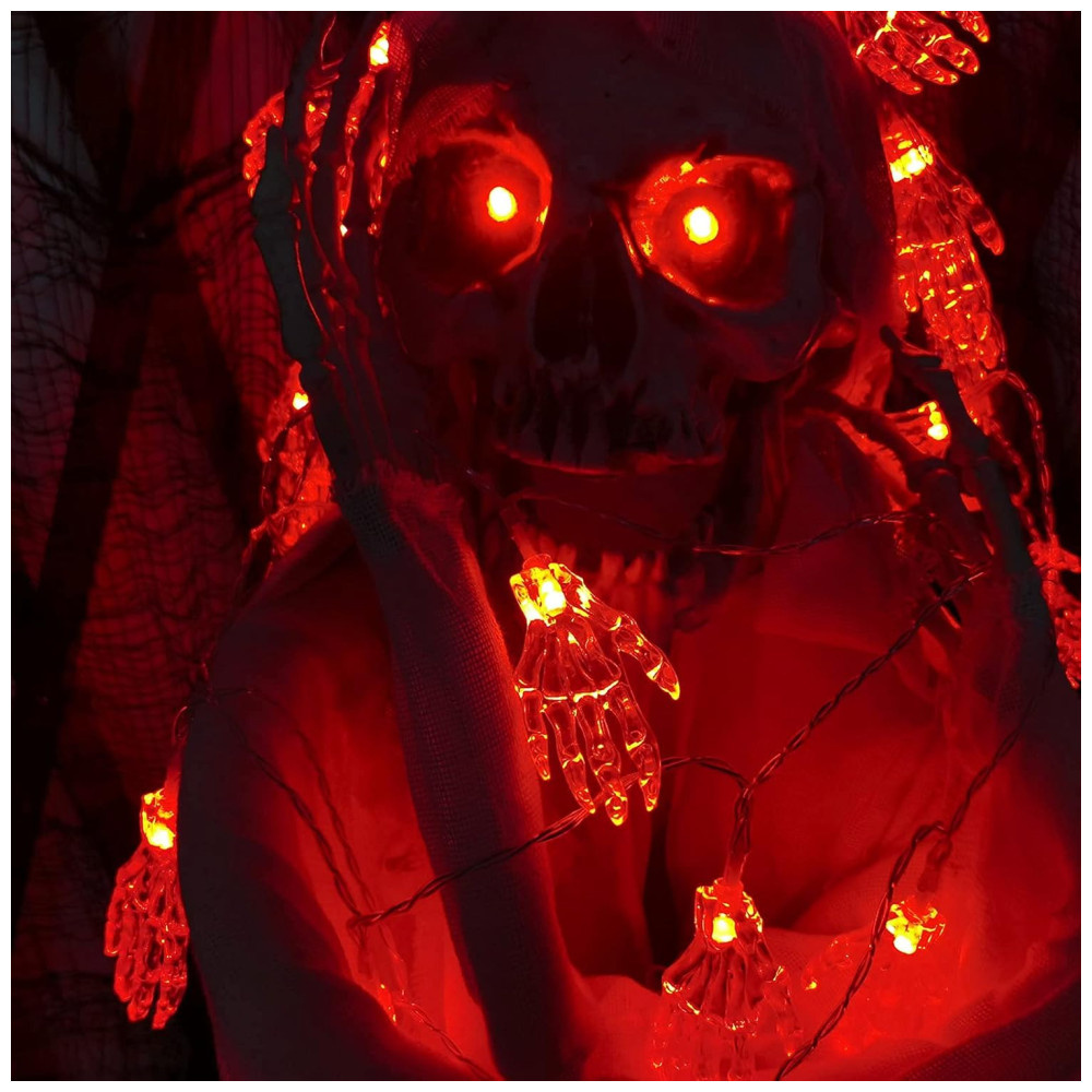 Pisca Pisca Mão de Esqueleto 30 LEDS 4 Metros para Decoração de Halloween Vermelho