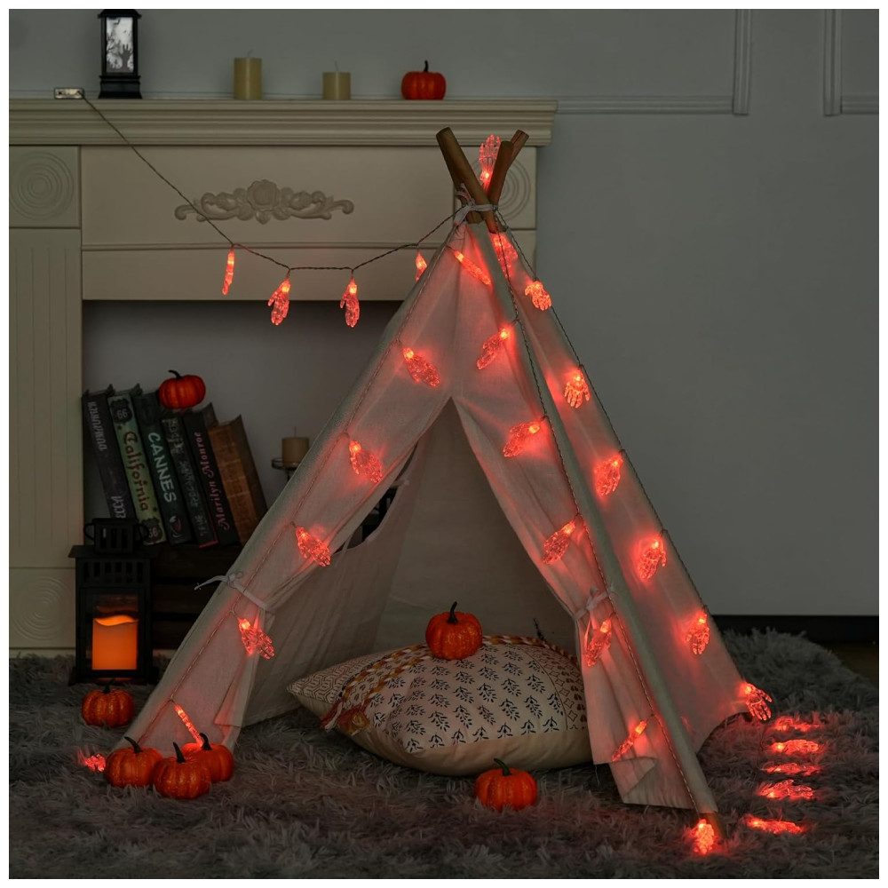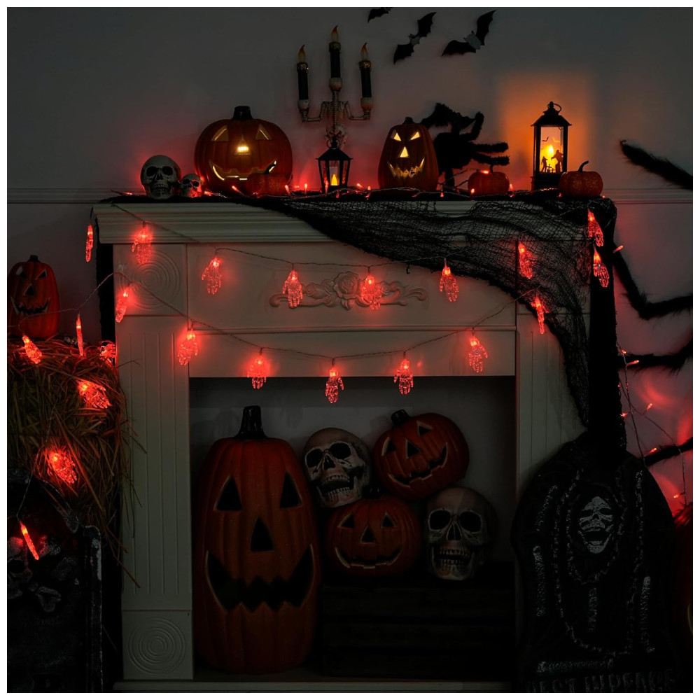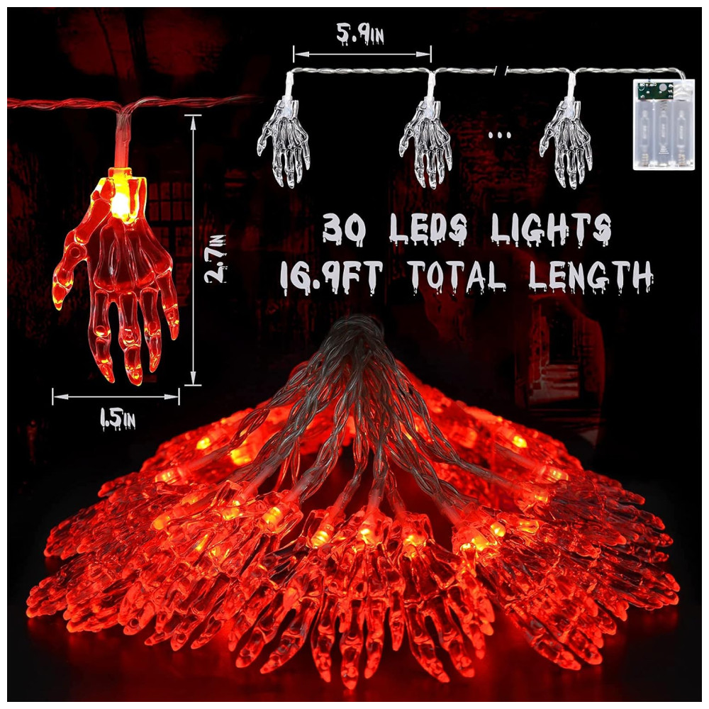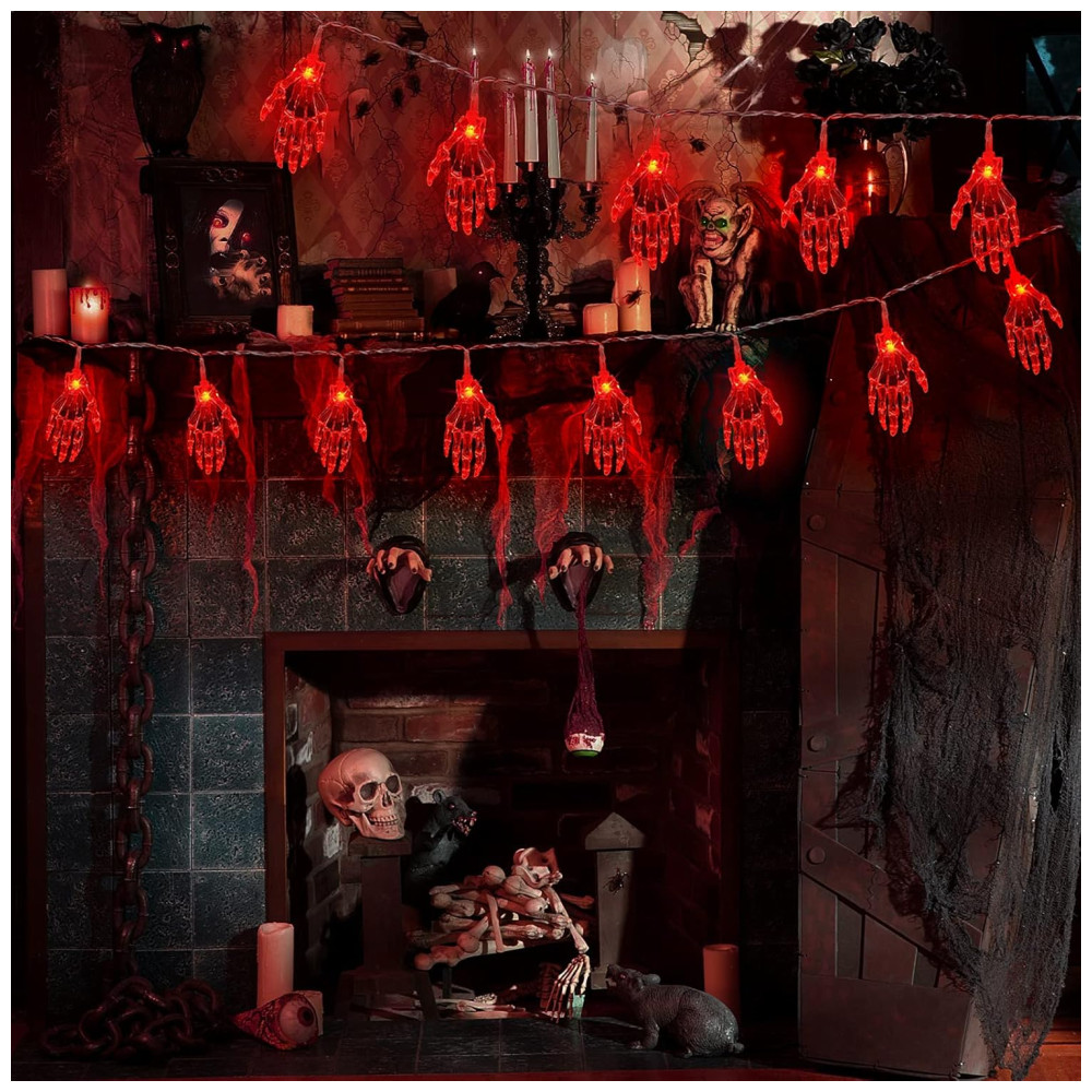 Pisca Pisca Mão de Esqueleto 30 LEDS 4 Metros para Decoração de Halloween Vermelho