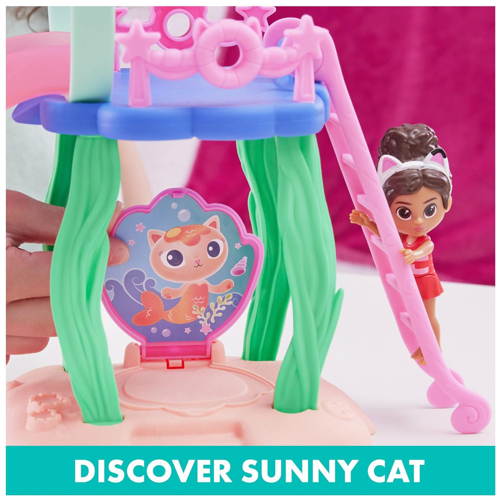 FIGURAS EXCLUSIVAS DE GABBY E MERCAT Gabby e MerCat parecem exatamente como no show, vestidos com suas roupas de banho super fofas e prontos para algumas aventuras à beira da piscina
