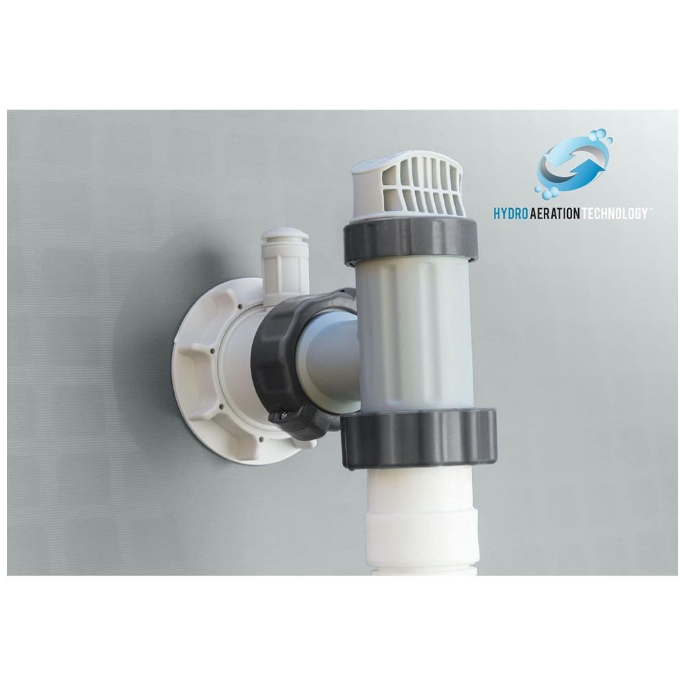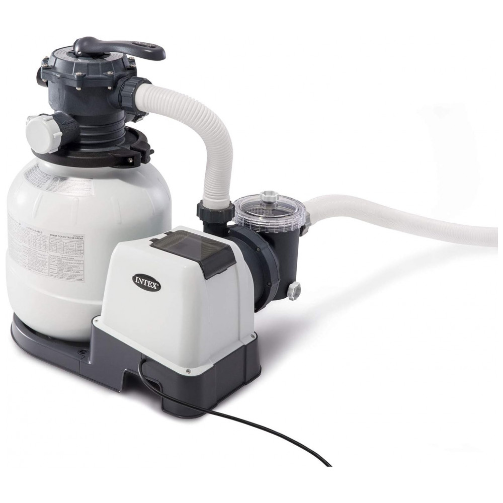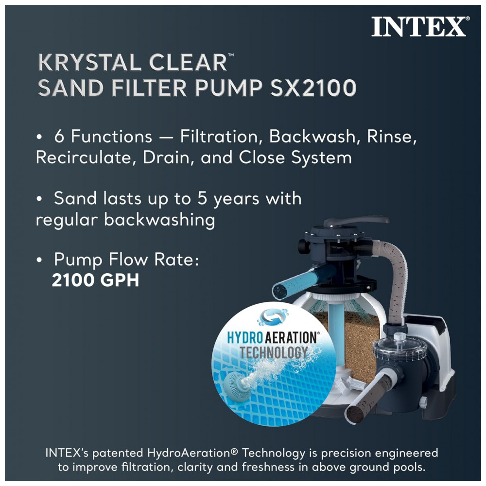 FILTRAGEM DE AREIA CLARA KRYSTAL A bomba de filtro de areia transparente Krystal incluída 26645EG fornece excelente filtragem de água, pois a válvula de controle de 6 funções permite ao proprietário da piscina: filtrar, retrolavar e enxaguar, recircular, drenar e fechar o sistema