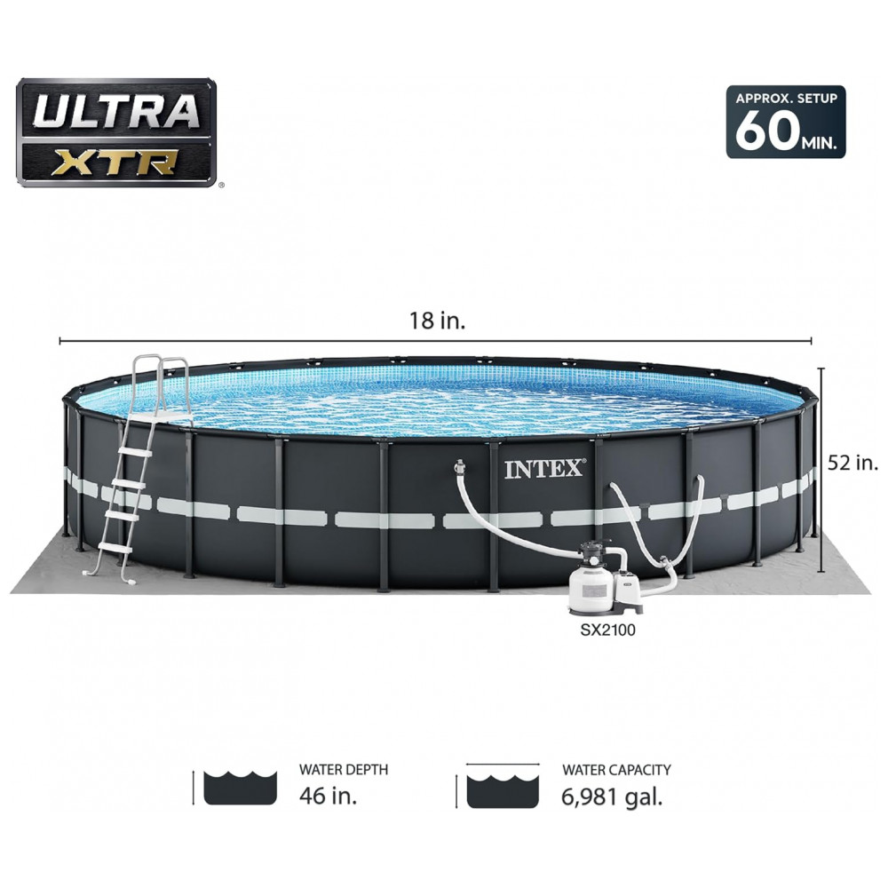 Piscina Estruturada Redonda 26.384 Litros 55 Metros comn Bomba de Filtro Resistente a Perfurações INTEX 26329EH Ultra XTR