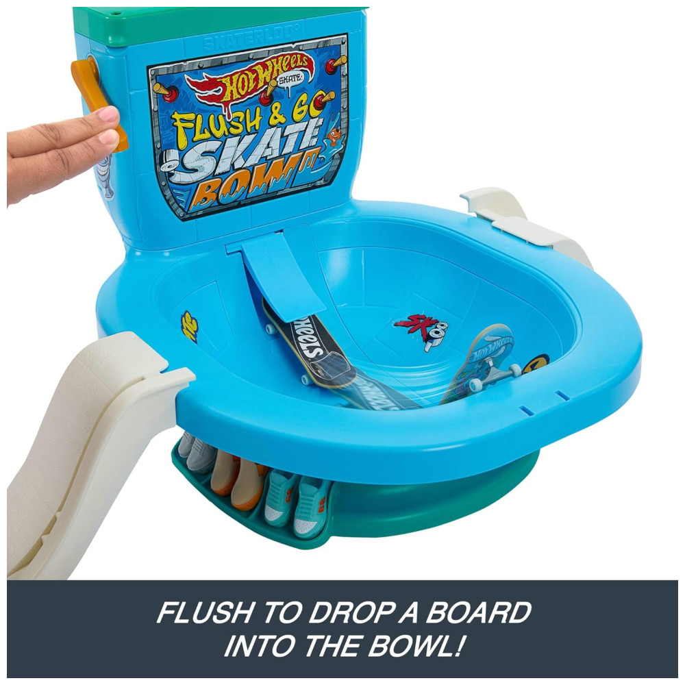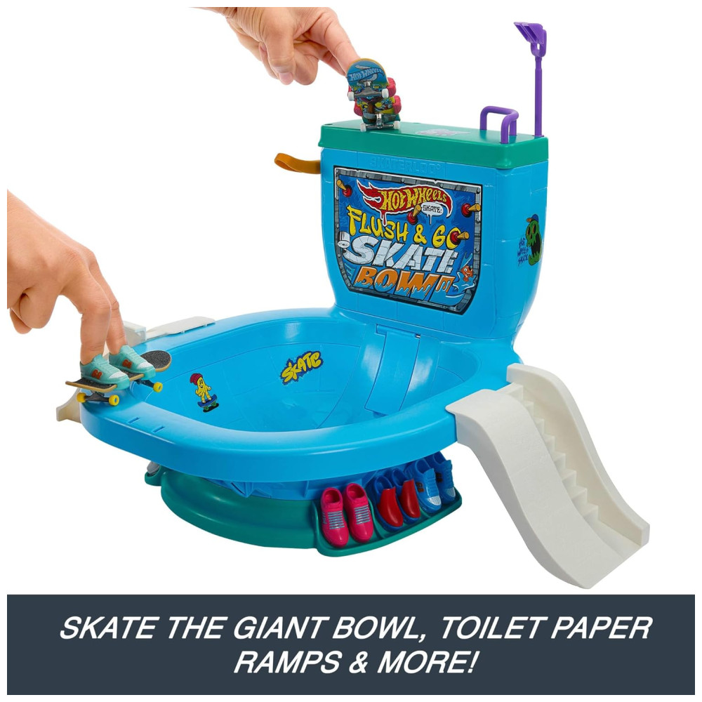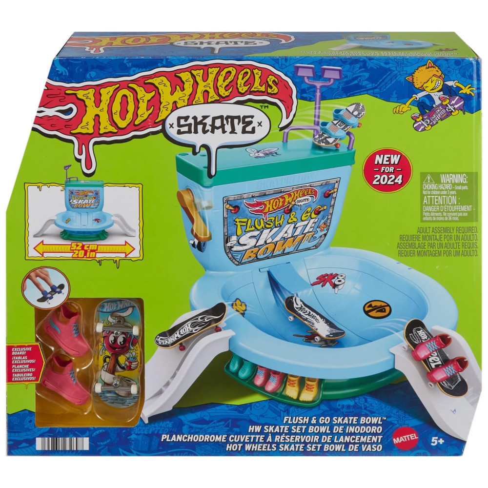 Componentes incluídos Inclui 1 tigela Hot Wheels Skate Flush Go Skate com 1 escala exclusiva e 1 par de tênis de skate.