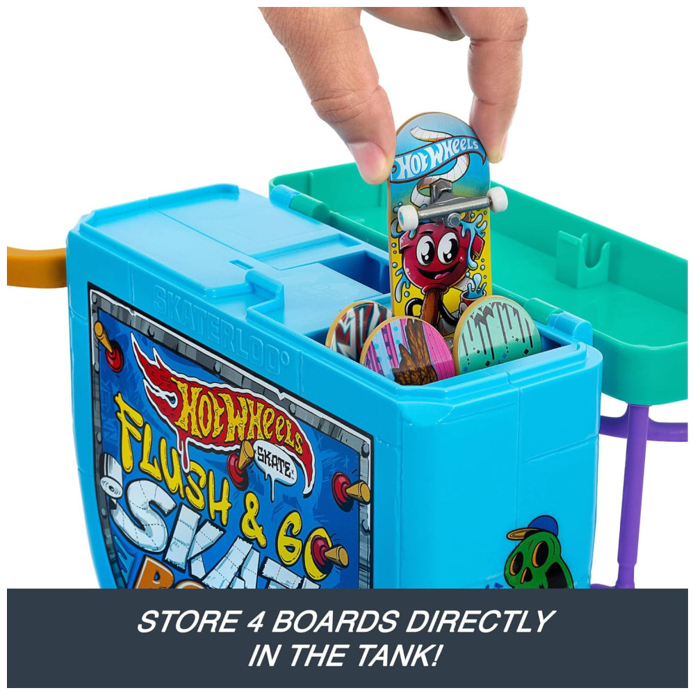 Guarde o fingerboard incluso no tanque, pressione o flusher e solte-o na tigela para começar a fazer truques incríveis. Use os tênis de skate para dominar as manobras ou remova-os para um desafio maior. O conjunto oferece armazenamento para até 3 pranchas e 5 pares de sapatos adicionais (uma prancha e um par de sapatos inclusos; pranchas adicionais vendidas separadamente).