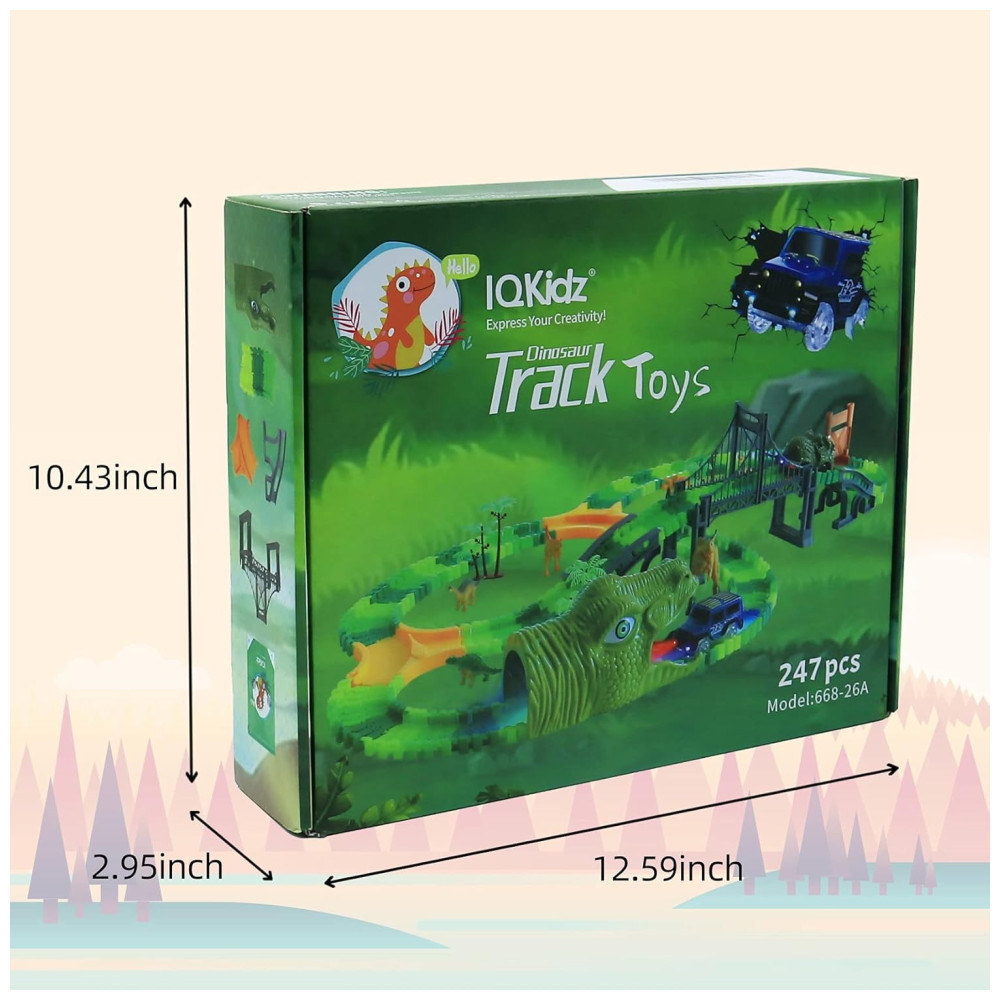 Pista de Corrida com 216 Peças e Tema de Dinossauros para Crianças Acima de 3 Anos IQKidz Verde