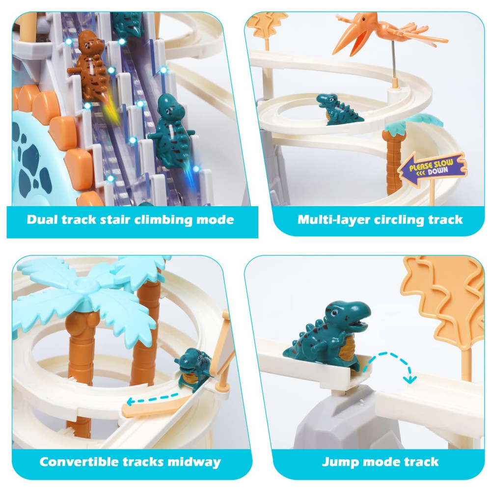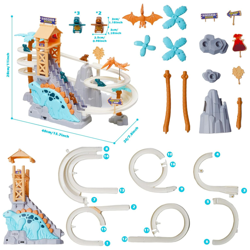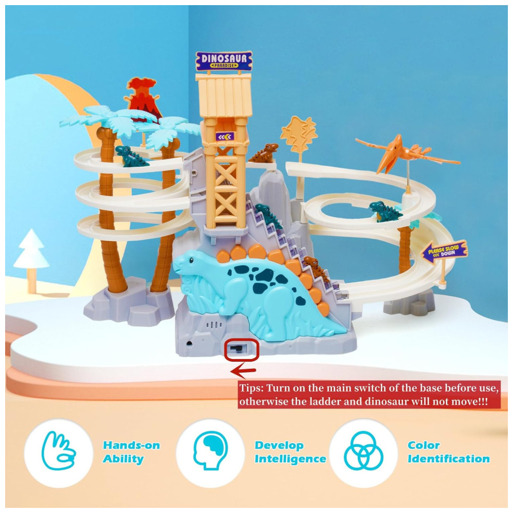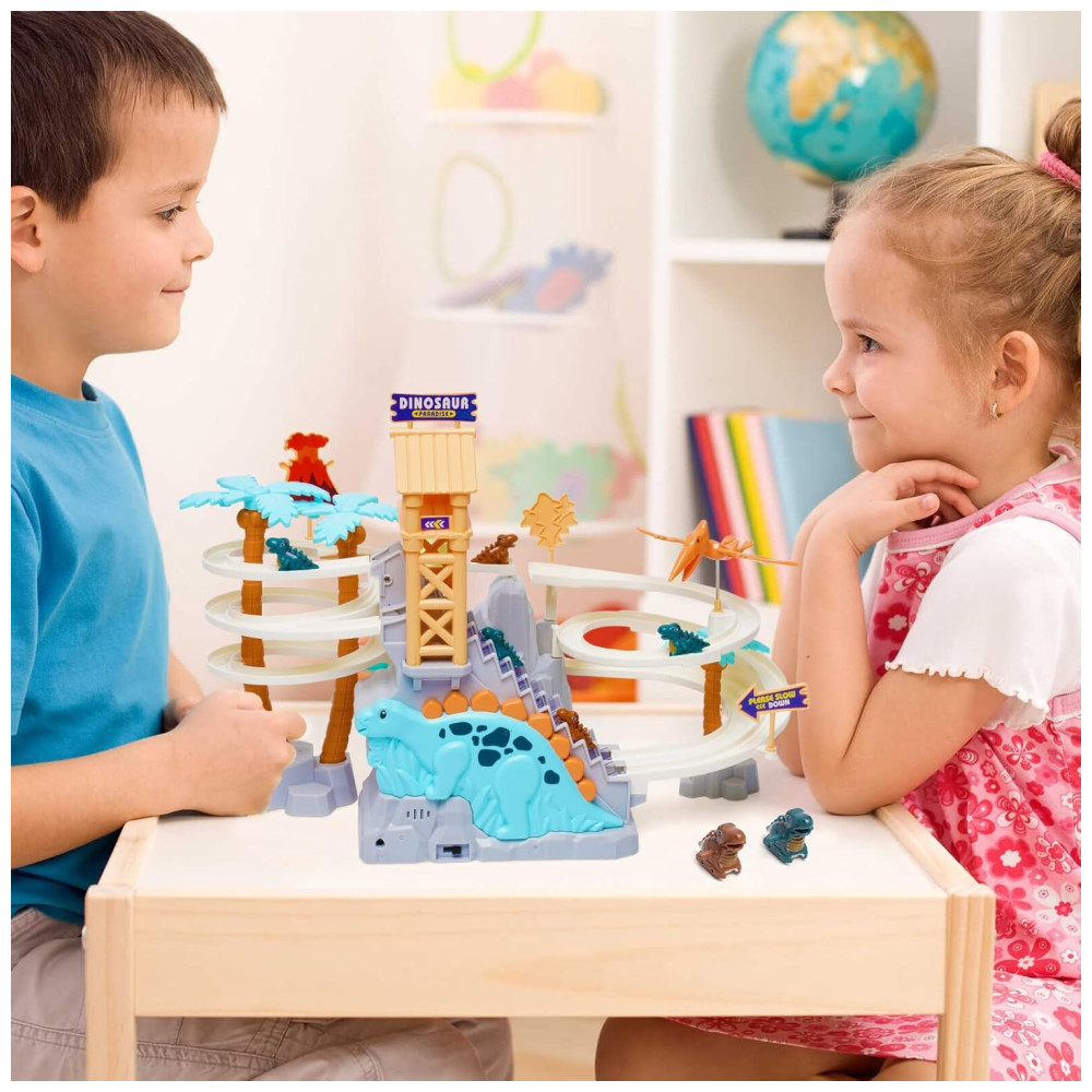 Pista de Corrida com Tema de Dinossauros e Montanha Russa com Música para Crianças Acima de 3 Anos Ark Miido Colorida