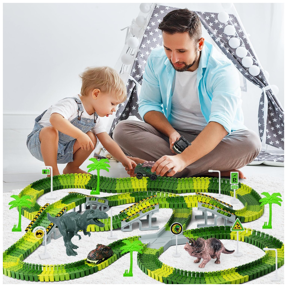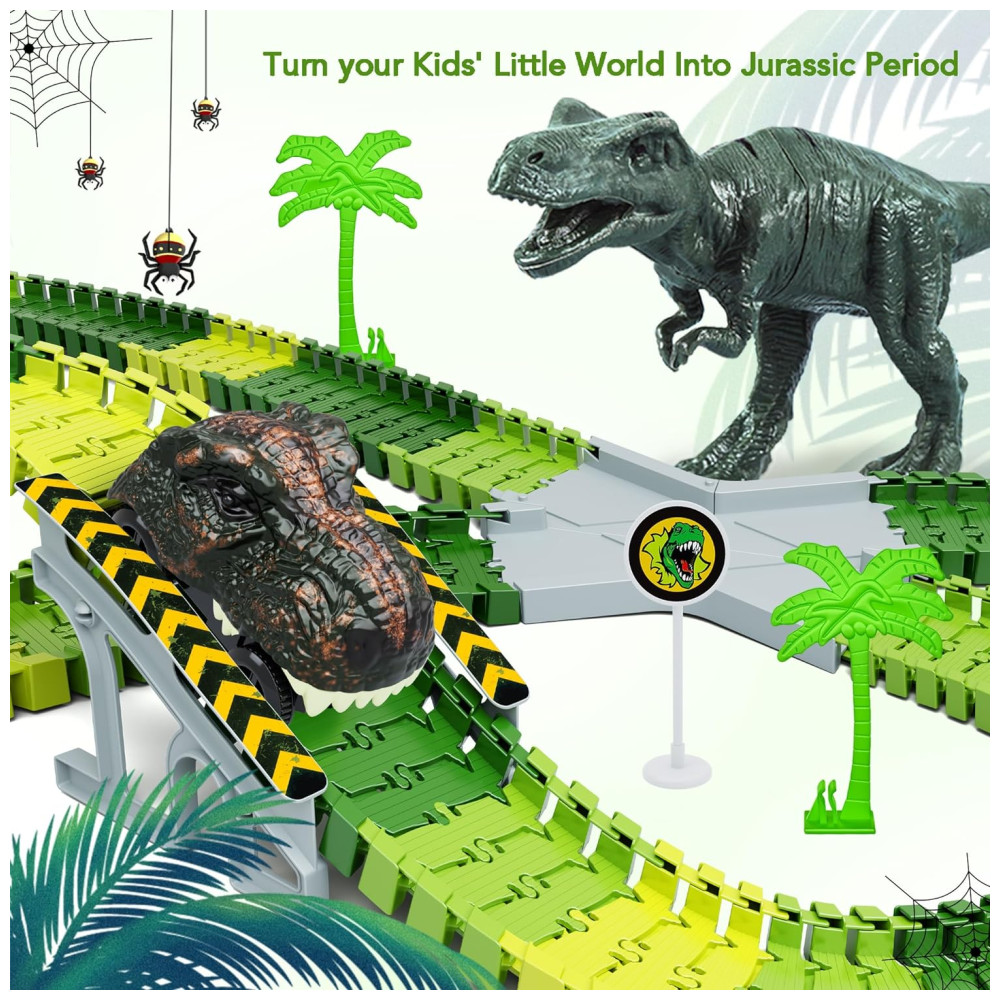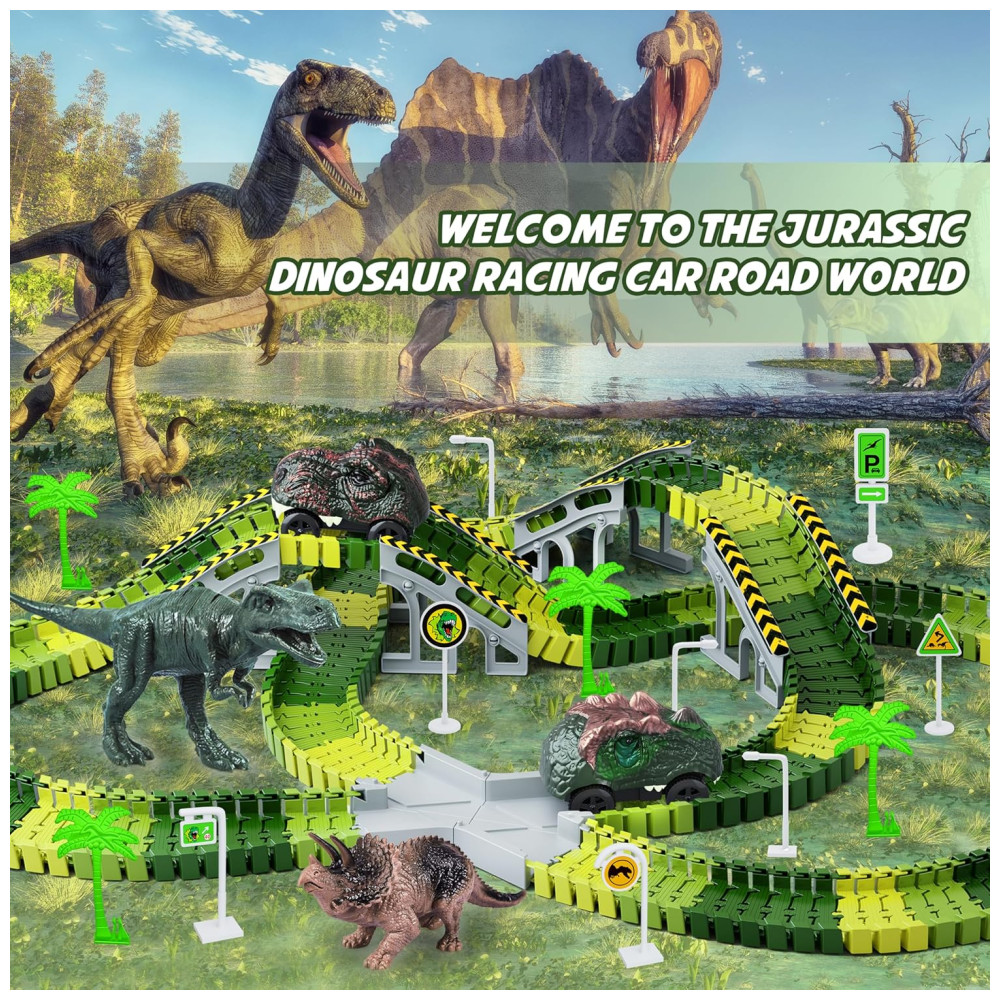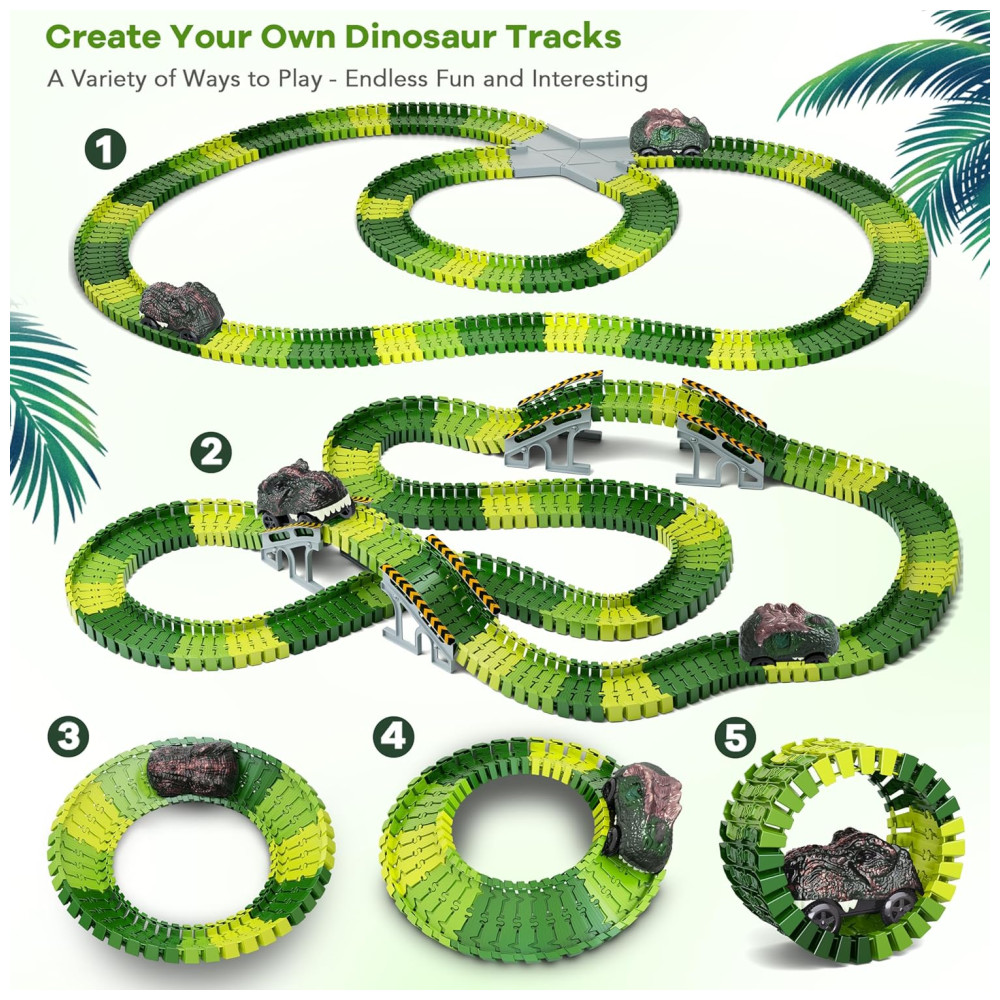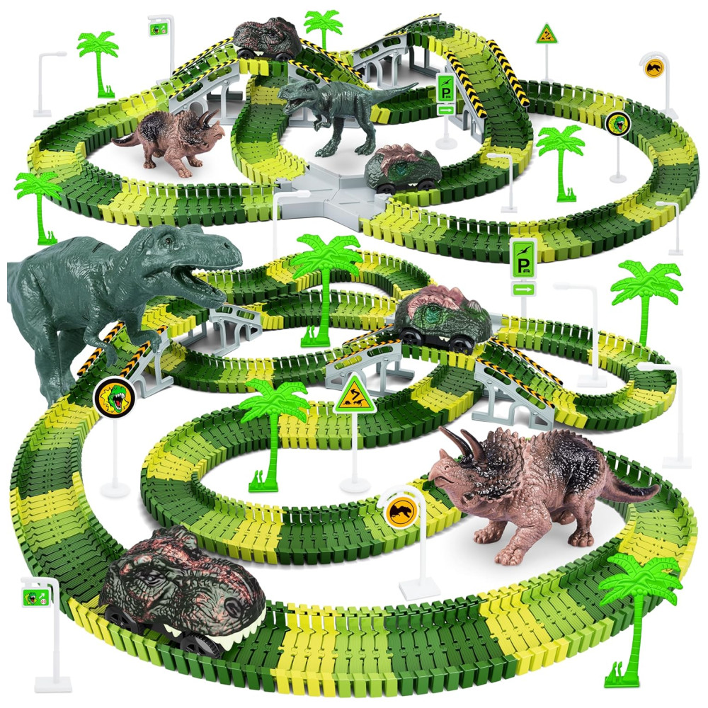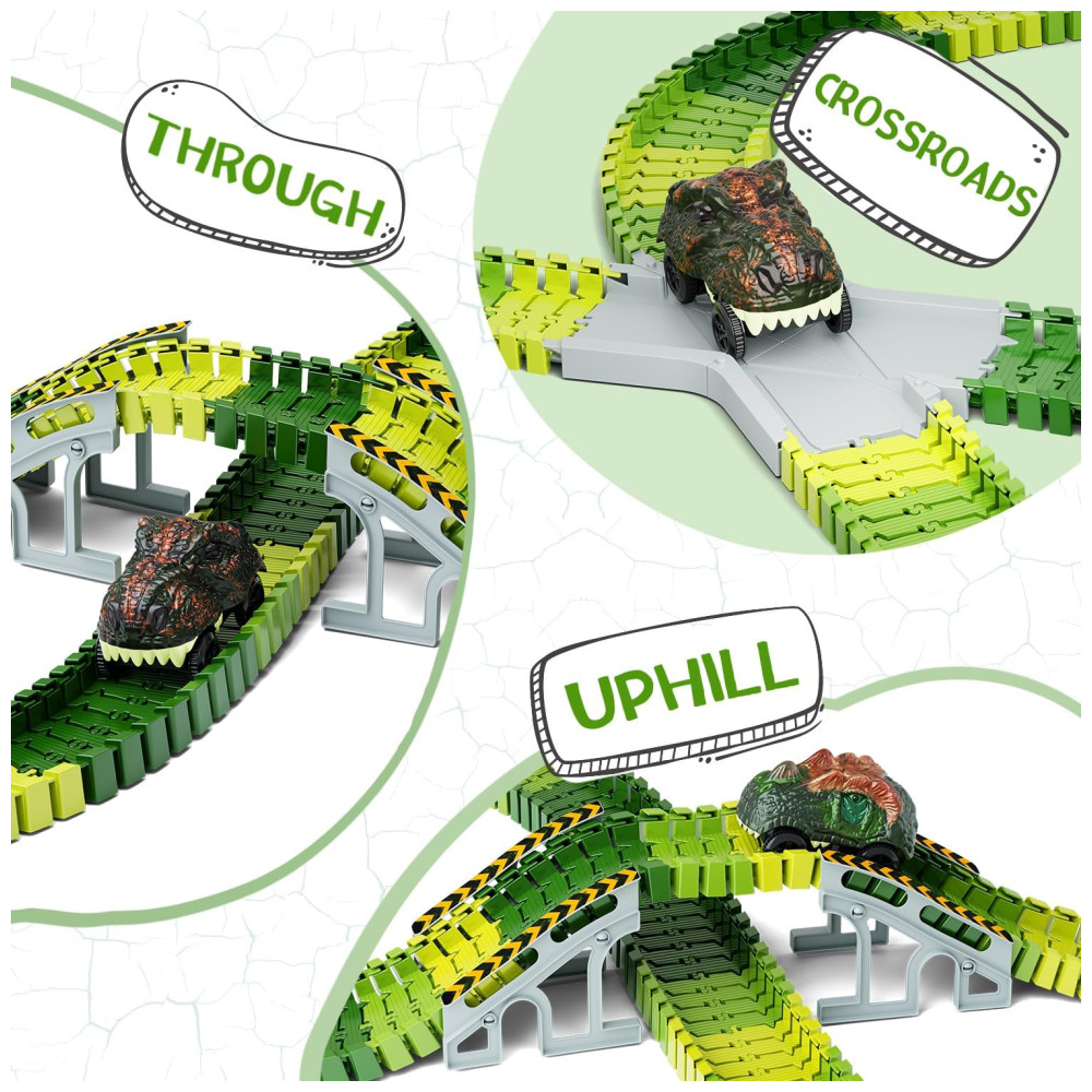 Pista de Corrida Dinossauros Playset Flexível com 252 Peças para Crianças de 3 a 6 Anos Toyk Verde