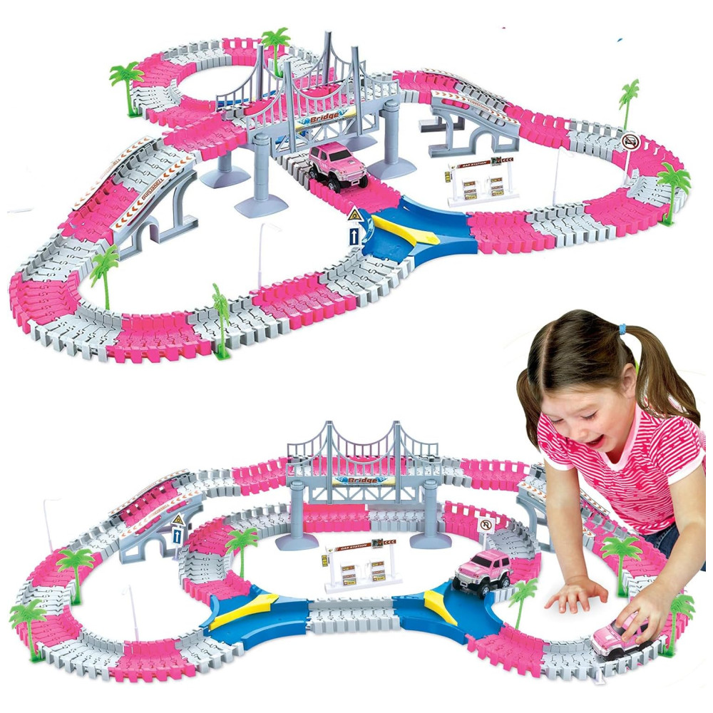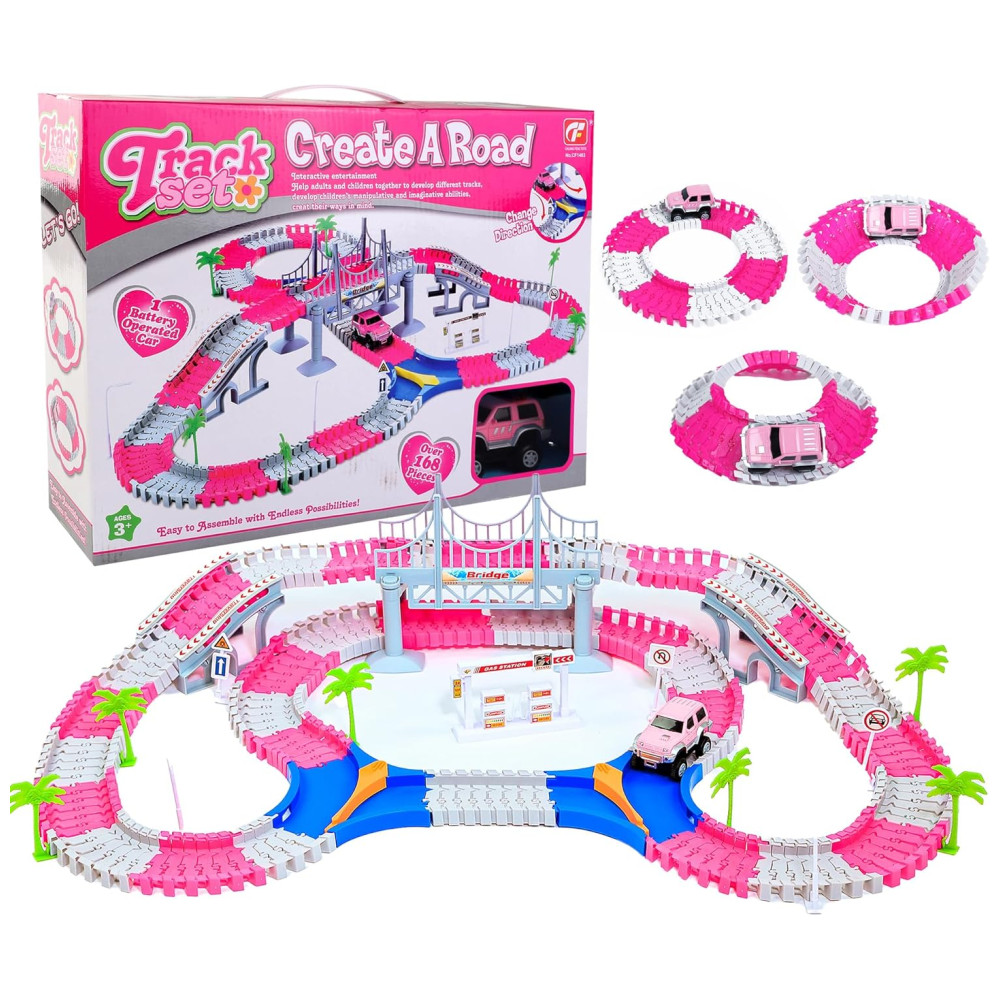 Pista de Corrida Dobrável com 168 Peças para Crianças Acima de 3 Anos Liberty Imports CF1403 Rosa