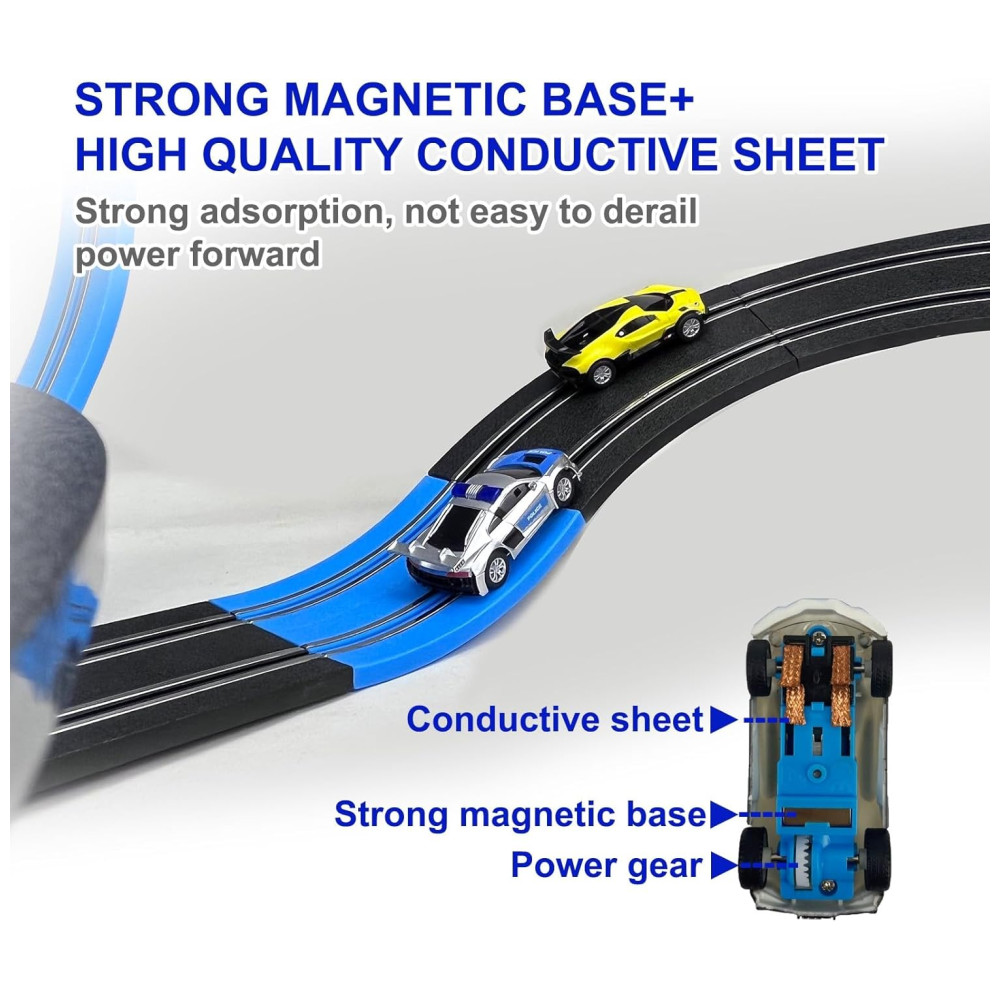 Os carros rodam suavemente e possuem uma base magnética forte para melhorar a estabilidade. O adaptador de energia garante um funcionamento mais estável e durável do carro, além de ser ecologicamente correto. Feito de materiais plásticos abs ambientais, é seguro e não tóxico, tornando se um presente perfeito para crianças em datas como Páscoa, Natal, Halloween, Dia de Ação de Graças e Ano Novo.