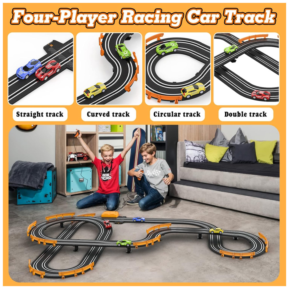 Pista de Corrida Slot Car com 4 Carros de Alta Velocidade e Controle para Crianças Acima de 4 Anos Wupuaait Colorido