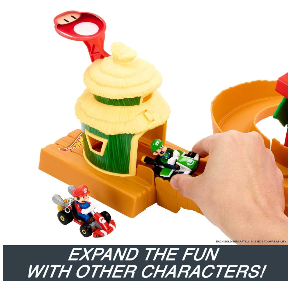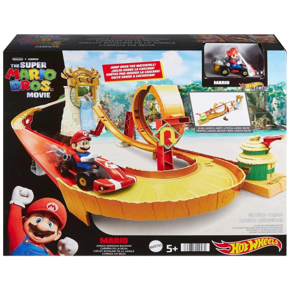 Pista de Corrida Super Mario Bros Jungle Kingdom Raceway com Carro em Escala 1:64 Hot Wheels