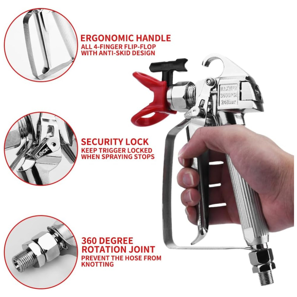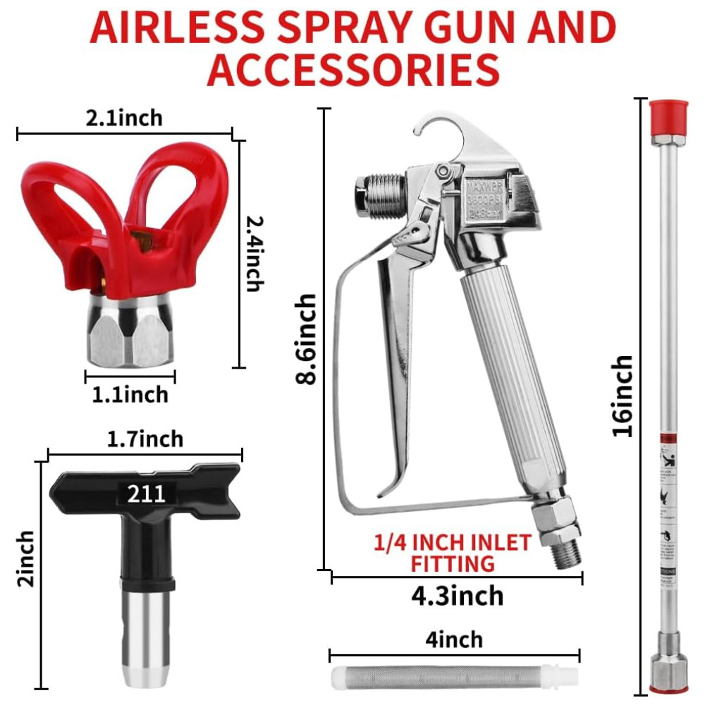 Pistola de Pintura Airless 3600 PSI Alta Pressão com Proteção 5 Bicos (211 313 415 517 623) 5 Filtros e Extensor de Pintura 40 cmEvery Family.